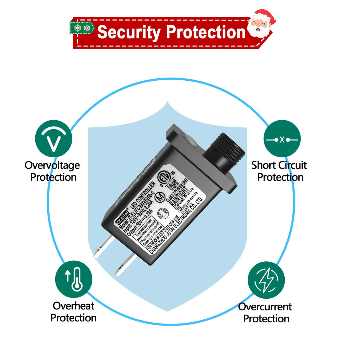 Q: Does the transformer have a timer function, and how does it work?A: Yes, the transformer features a timer function that can be activated by pressing the button for 3 seconds until the green light turns on. It allows the lights to stay on for 6 hours each day and turn off for 18 hours.