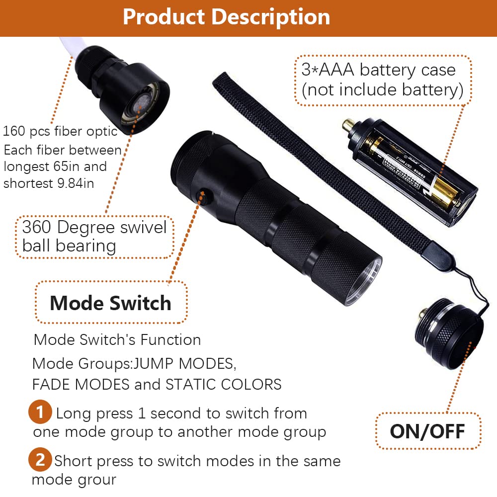 Fiber Optic Whip, LED Fiber Optic Dance Whips - 360 Swivel Pixel Rave Whip Toy - Super Bright More than 40 Color Effect Modes -