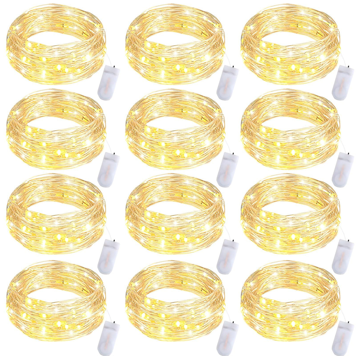 Fibevon Fairy Lights Battery Operated, 12-Pack 7.2Ft W/20 Led Mini White Fairy Lights Waterproof String Lights For Wedding/Mason Jar/Centerpiece Table/Bedroom/Valentines/Christmas Decoration