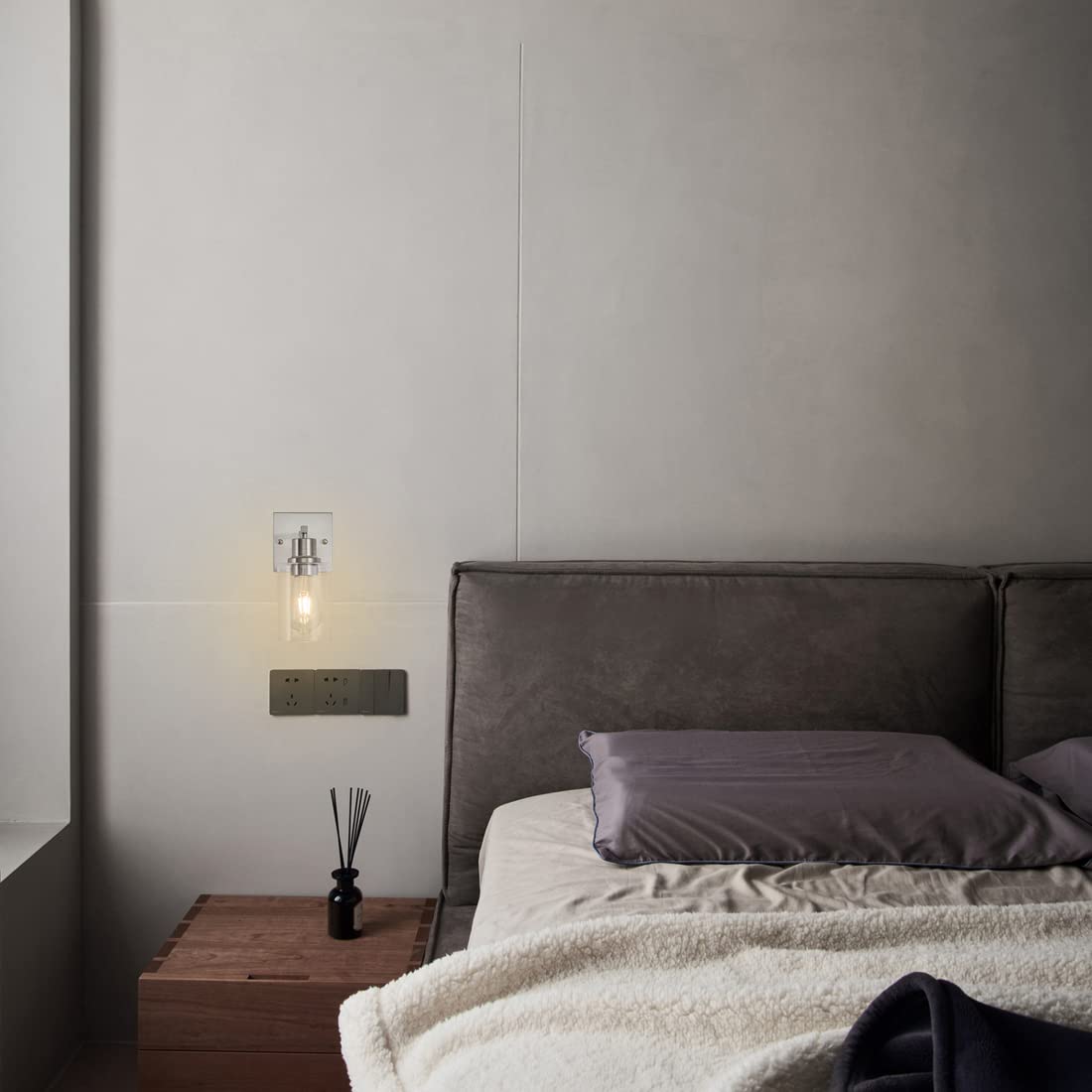 Filimitiy 1-Light Bathroom Light Fixtures, Brushed Nickel Vanity Light With Clear Glass Shade, Modern Wall Sconce For Mirror Bed