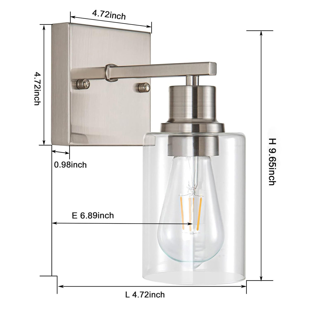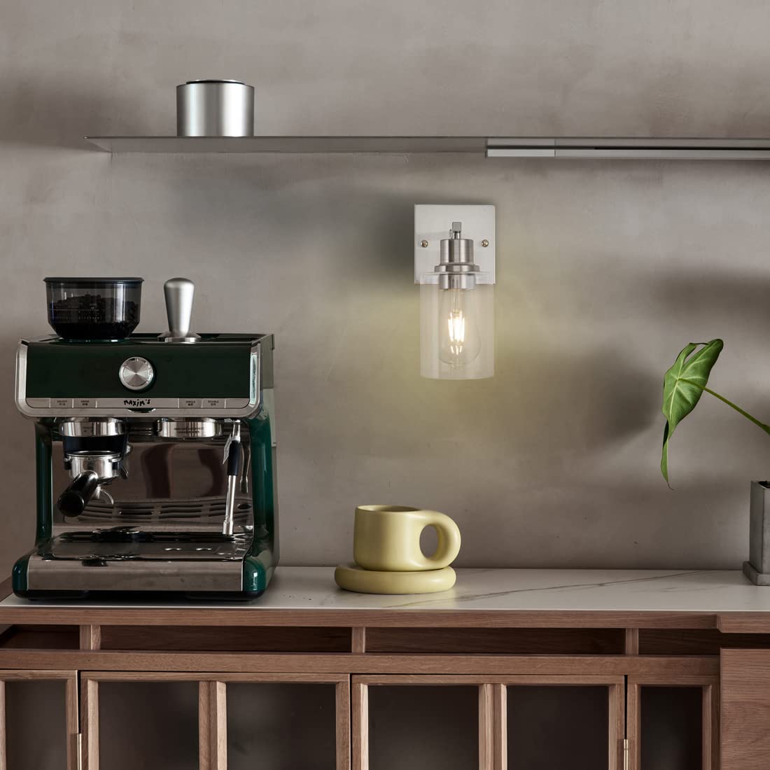 1-Light Bathroom Light Fixtures, Brushed Nickel Vanity Light with Clear Glass Shade,Modern Wall Sconce for Mirror Bedroom Hallway Farmhouse Kitchen