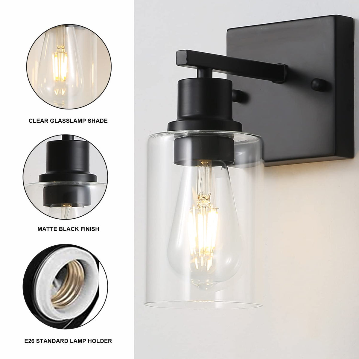Filimitiy Bathroom Vanity Light Fixtures, 1-Light Matte Black Bathroom Lights, Wall Sconces With Clear Glass Shade For Hallway F