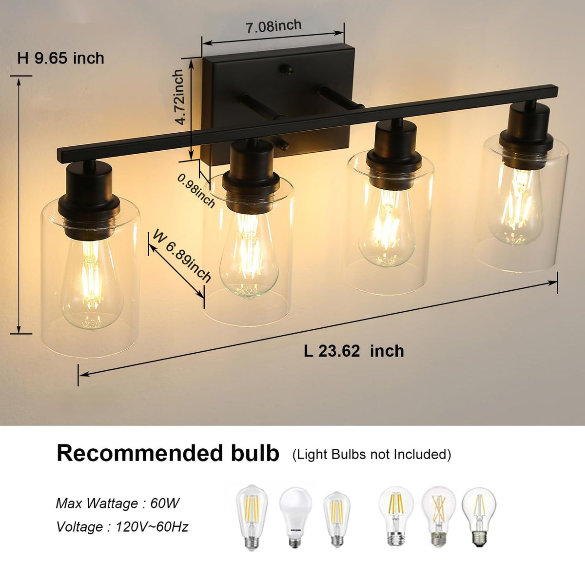 Filimitiy Bathroom Vanity Light Fixtures, 4-Light Matte Black Bathroom Lights, Wall Sconces With Clear Glass Shade For Hallway F