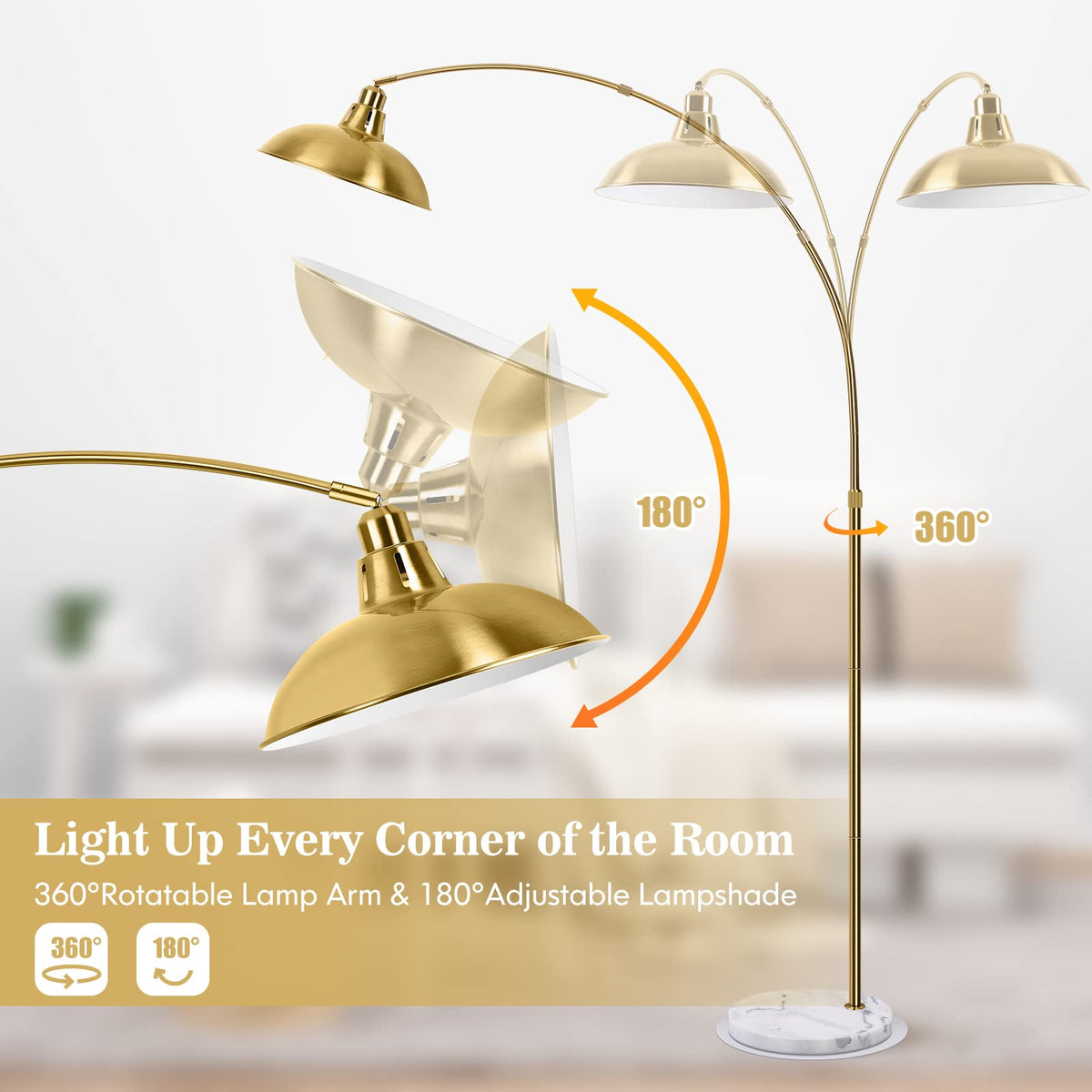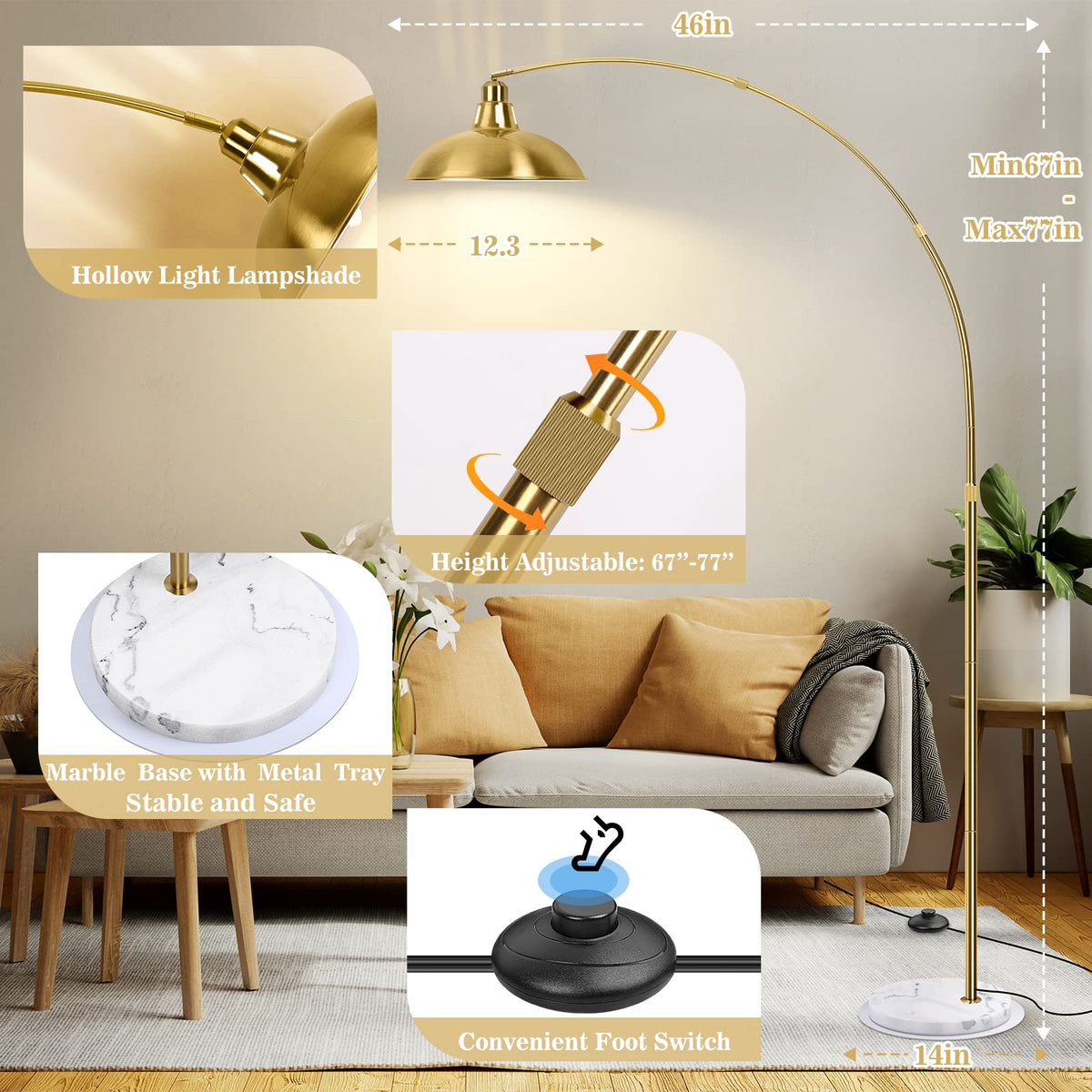 Modern Arched Design &Amp; Mid-Century&Nbsp;Style The Arc Tall Floor Lamps Has An Elegant Curved Arm And A Metal Lampshade. They Are Electroplated To Prevent From Rusting And Corroding. The Combination Of Two Highlights Brings A Simple Industrial Design And Mid-Century Atmosphere, Making This&Nbsp;Standing Lamp Can Be Well Integrated Into Various Decorative Styles, Suitable For Hanging Over Your Sofa Or Desk In Living Room, Bedroom, Reading Nook And Office. Stable &Amp; Safe &Amp; Superior Quality Made Of Polished Metal Pole And Sturdy&Nbsp;Marble Base With Widened Tray, This Modern Floor Lamp&Nbsp;Is Will Not Be Easily Tipped Over. This Standing Lamp&Nbsp;Is Stable Enough To Hold In Anywhere And Safe To Kids And Pets Not Being Wobbled By Accident. Built With Metal Construction And Exquisite Workmanship, The Tall Lamp&Nbsp;Will Not Get Rusty After Years Of Use, Which Fits Well With Mid-Century, Modern And Contemporary&Nbsp; Decor. Adjustable Directions And Height This Floor Lamp&Nbsp;Can Rotate The Arm 360 And Adjust &Nbsp;The Shade&Nbsp;In Any Angles (180 Vertically And 360 Horizontally), Which Allows You Simply Adjust The Direction And Angle To Meet Different Spaces And Needs. Whats More, You Can Adjust The Height Of The Standing Light&Nbsp;Up And Down Between 67In And 77In According To The Height Of Your Furniture. It'S So Versatile And Convenient. Standard E26 Socket&Nbsp;&Amp; Easy To Install The Package Of This Floor Lamp Includes&Nbsp;Instructions And All Installed Hardware For Easy Installation. Light Up Your Room In Just A Few Minutes!&Nbsp;With An E26 Sized Socket Base, The Bulb Can Be Installed As Desired. Satisfaction Guarantee We Take Full Responsibility For Our Standing Lamps, And Thus, We Provide A 2-Year Manufacturer Warranty. If For Any Reason You Are Not Satisfied With Your Purchase, Please Reach Us.