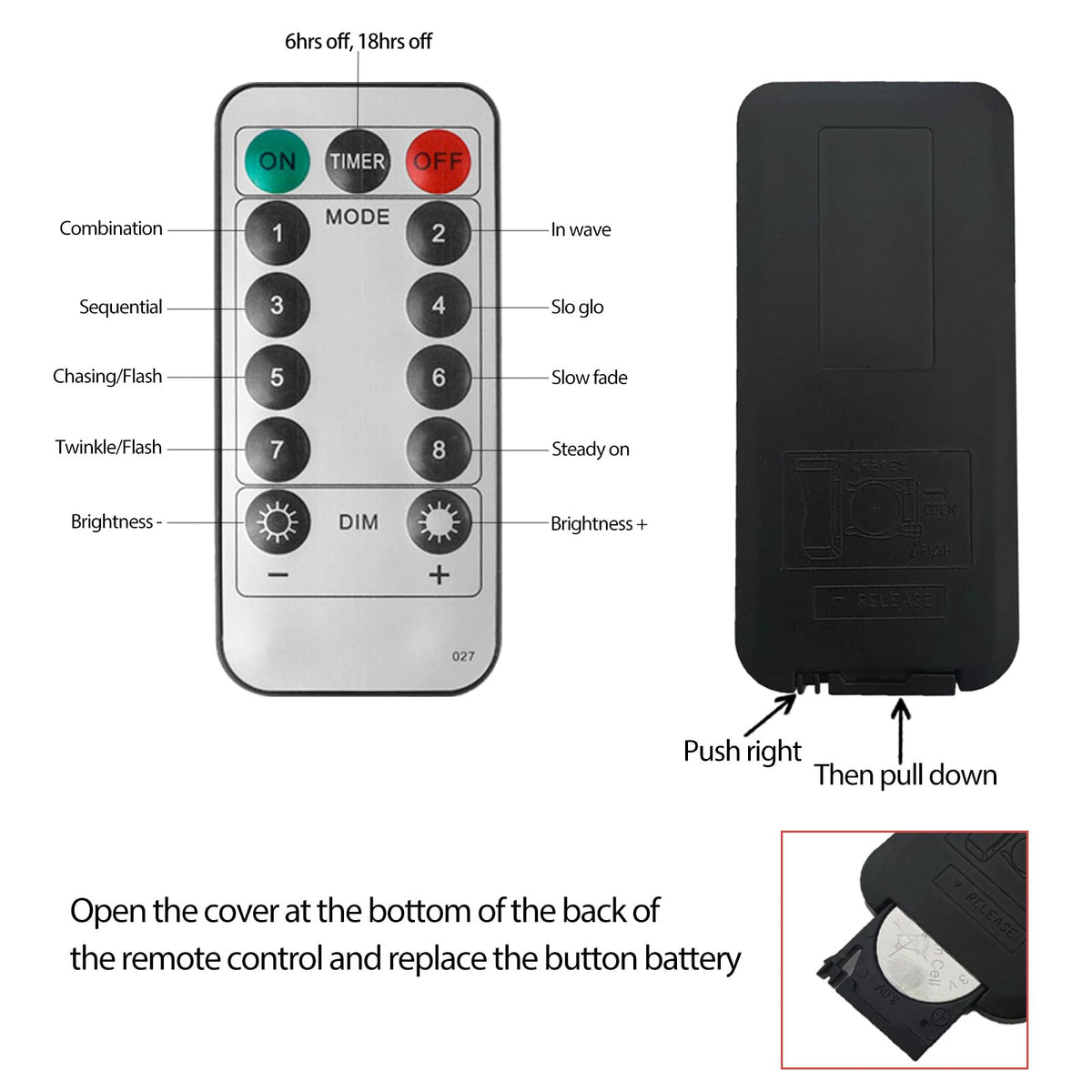 Remote Control: Includes a remote control for easy operation from a distance of up to 26-32 feet, making it convenient to switch modes or turn the lights on and off.