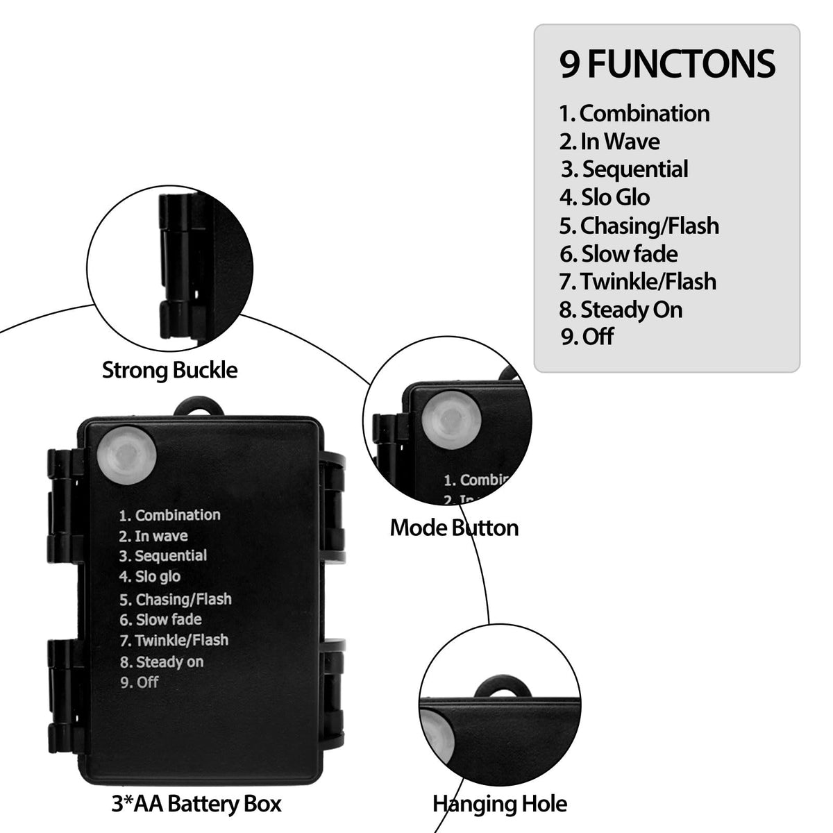 8 Lighting Modes: Choose from combination, wave, sequence, slo glo, chase/flash, slow fade, blink/flash, and steady on modes.