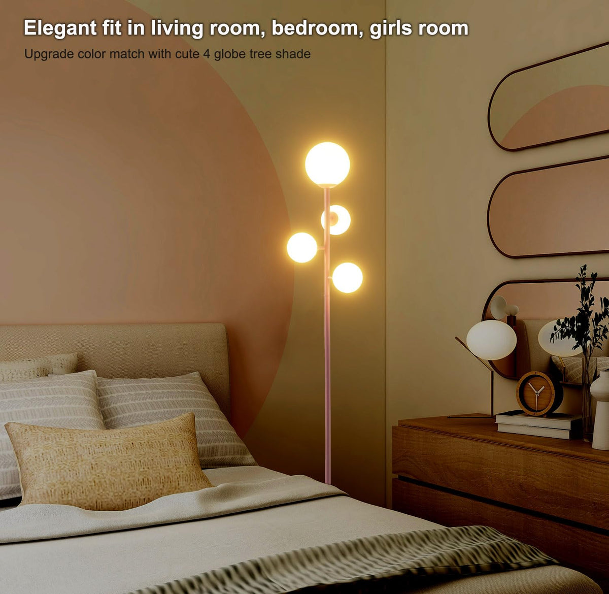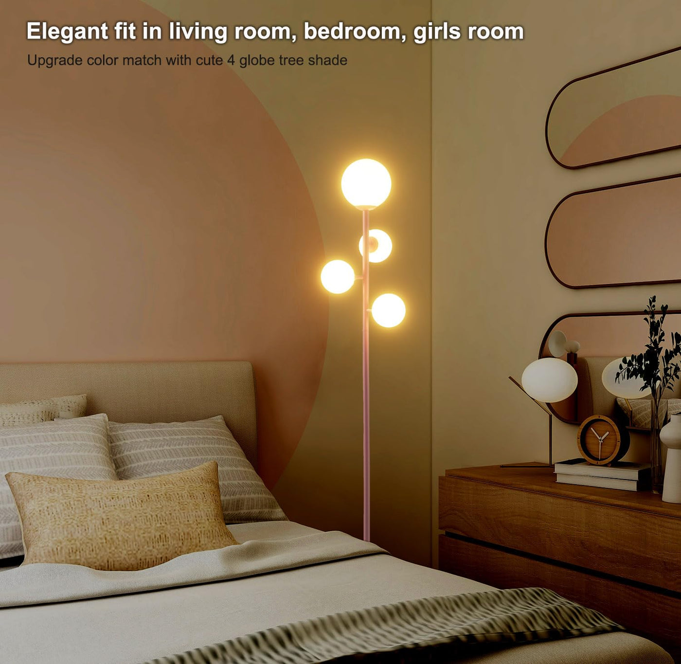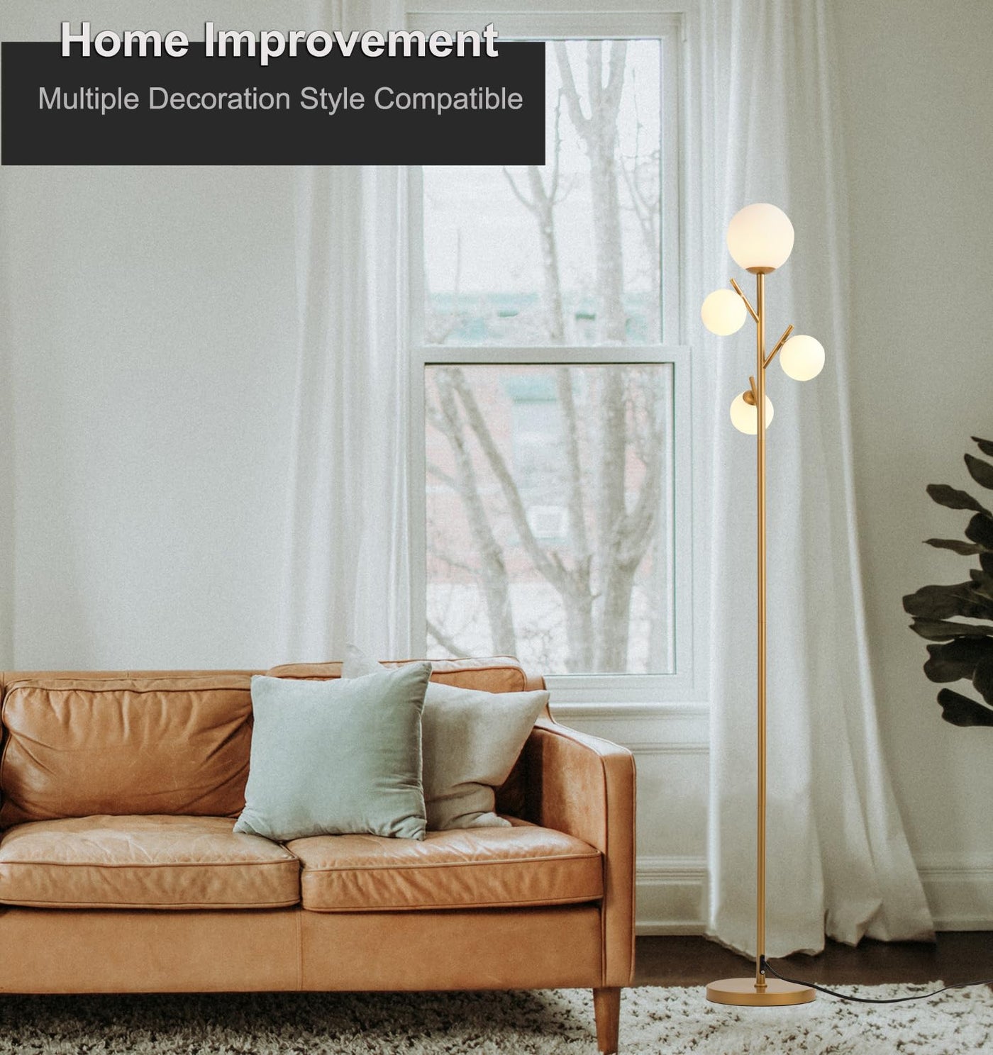 - **Easy Assembly**: Designed for user-friendly installation, this modern floor lamp features a simple screw-in design. The lamp pole, base, and 4 frosted glass globes can be easily assembled without the need for tools or an electrician, saving you time and effort.
