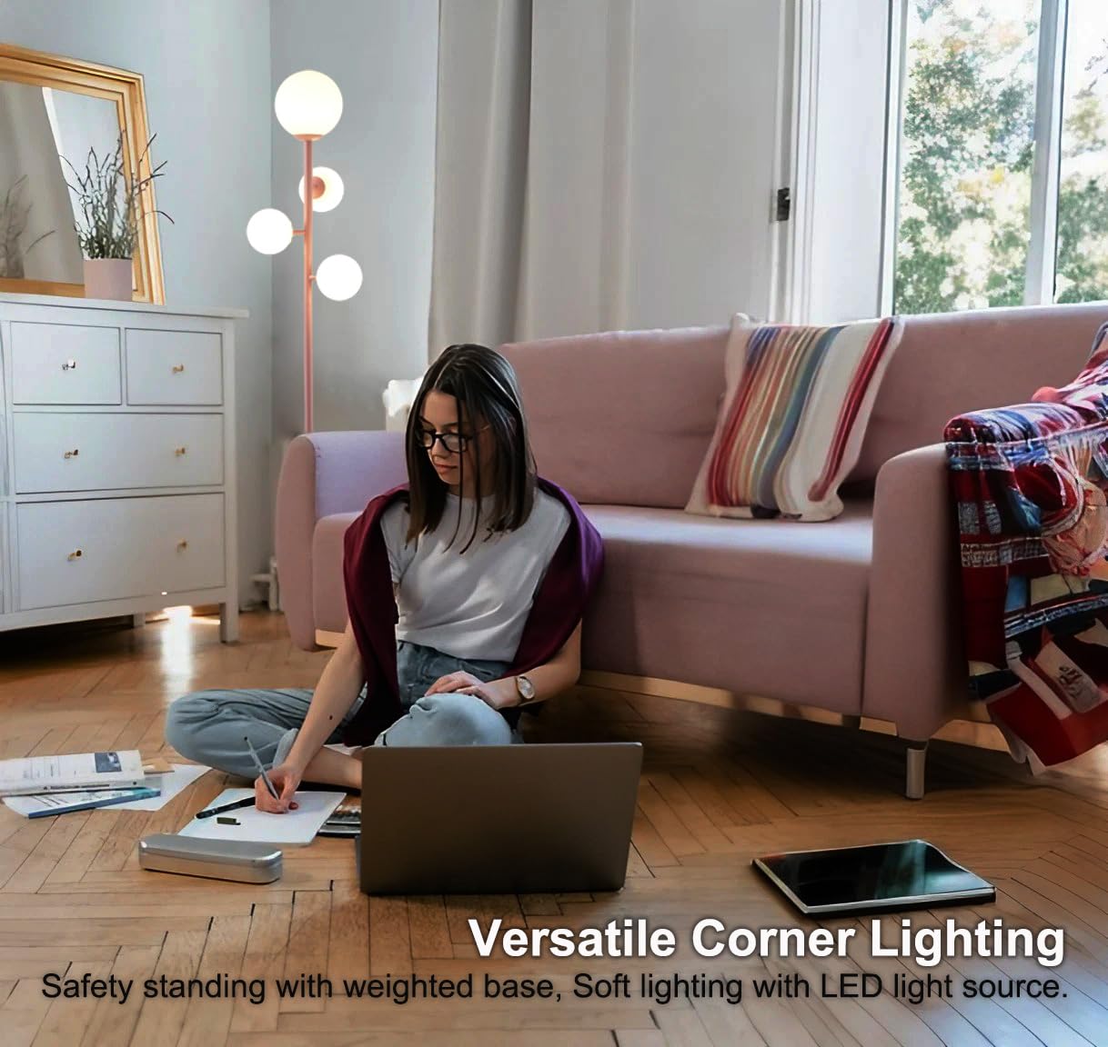 - **Highly Durable Structure**: Crafted from whole metal lamp poles and a weighted base, this globe floor lamp ensures stability and durability. The metal body also promotes efficient heat dissipation, allowing for safe, long-term use without overheating.