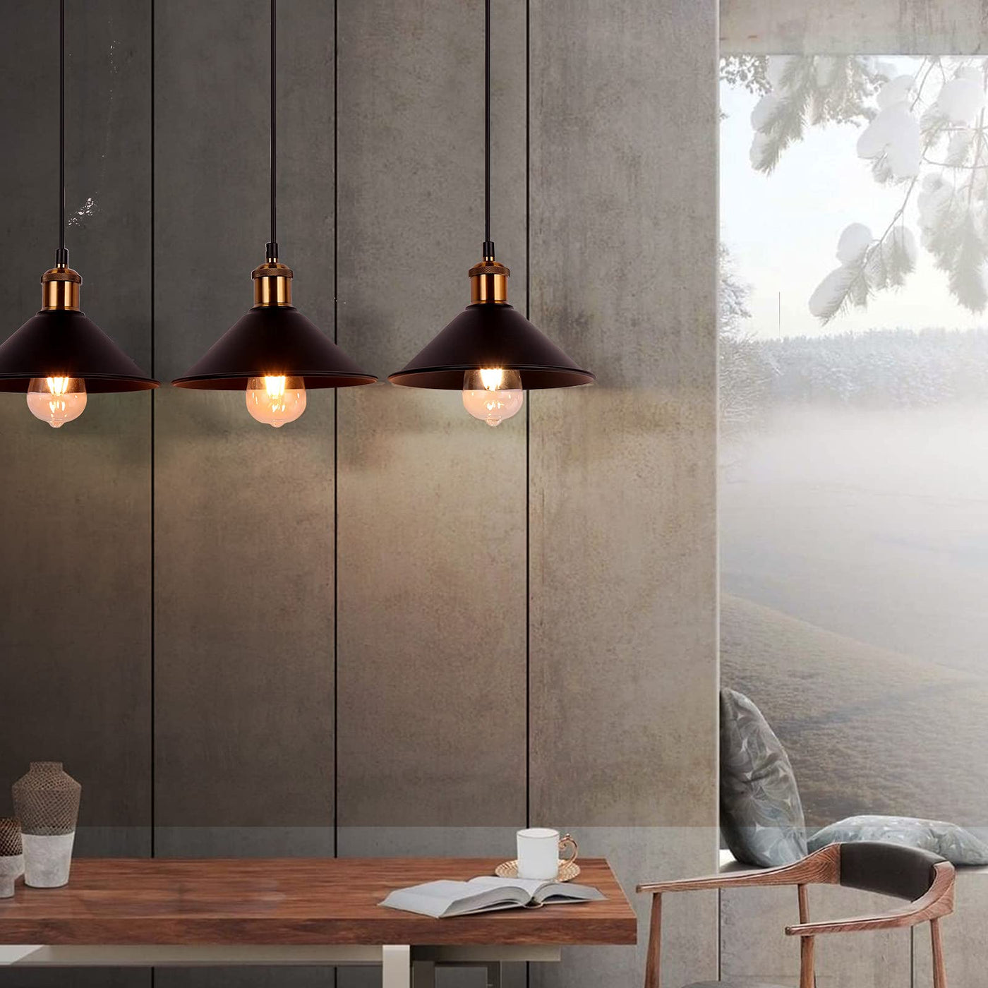 Illuminate your space with the FIRVRE Industrial Pendant Light, a perfect blend of modernity and vintage charm. This black adjustable metal fixture enhances any room, making it ideal for home kitchens, dining areas, and bars.
