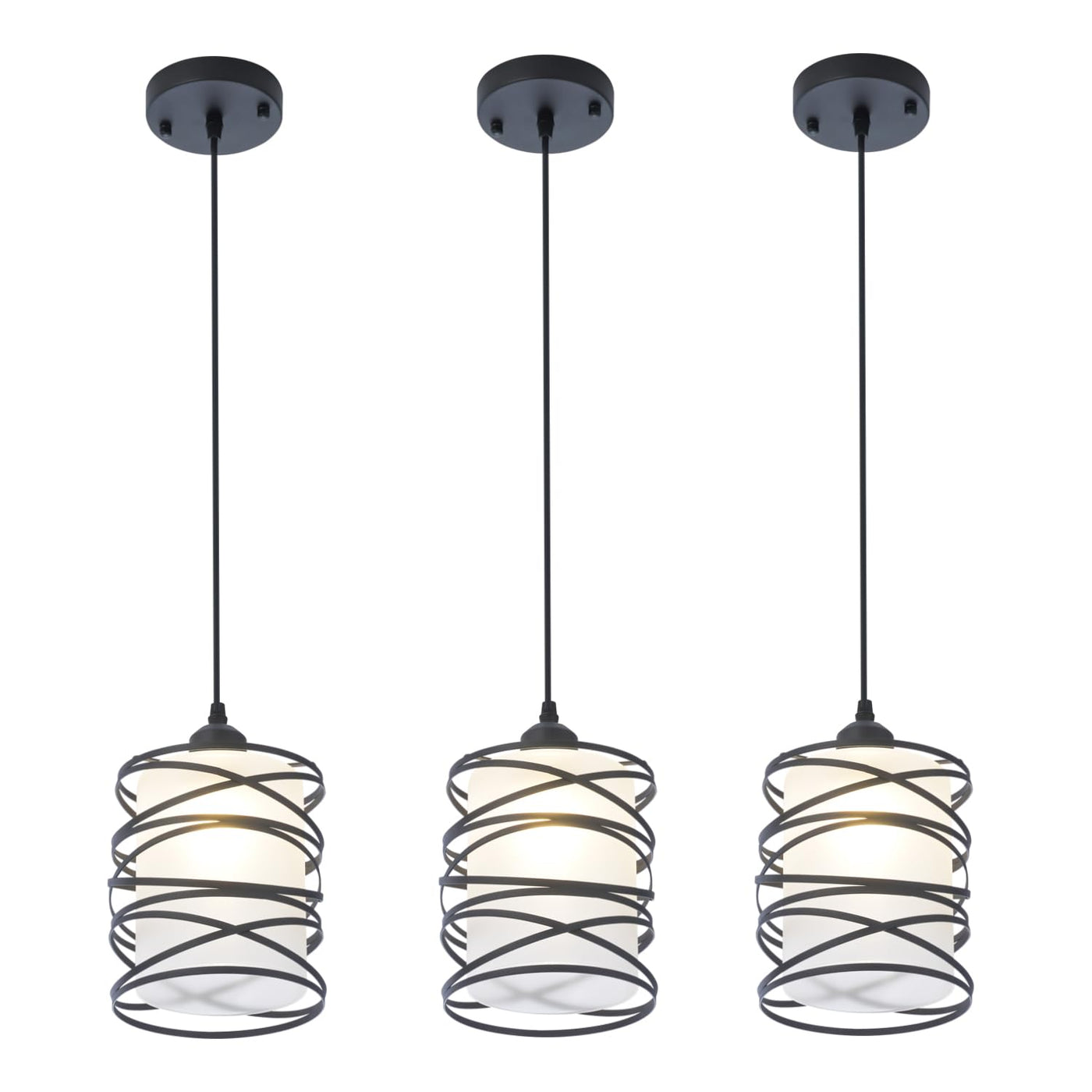 Fisgoni 3-Pack Modern Mini Pendant Light Fixture Kitchen Island Pendant Lighting 6.3''Matte Black Spiral Cage And Handblown Fros