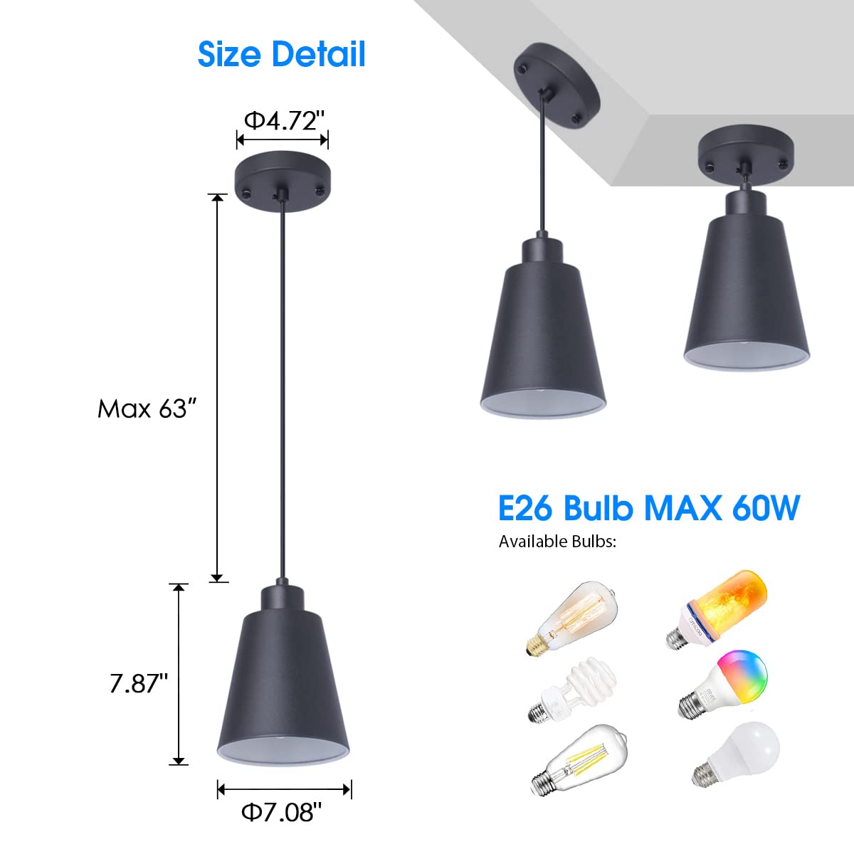 With a compact size of 5.9 inches and a lightweight design of just 1.15 pounds, this pendant light is easy to install and adds a stylish touch without overwhelming the space. Compatible with various bulb types including LED, incandescent, halogen, and compact fluorescent (E26 socket), it supports a maximum of 20W for LED and 60W for other bulbs, making it both practical and energy-efficient.