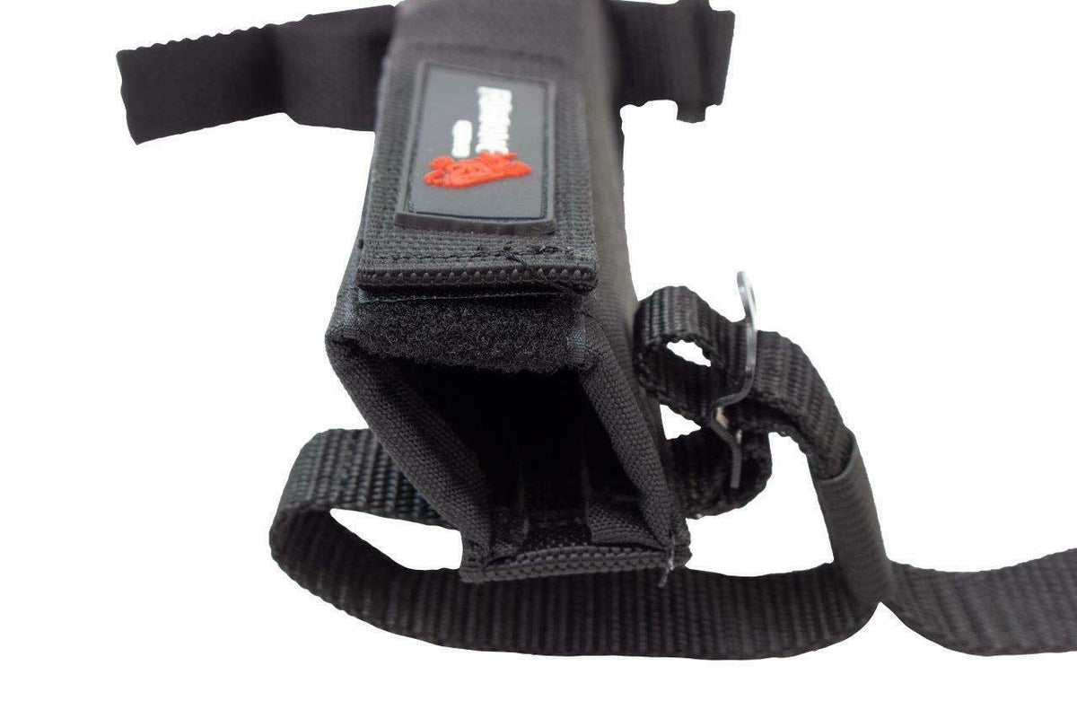 Q: What materials are used in the construction of the Fishbone Offroad flashlight holder?A: The flashlight holder is made of high-quality black fabric and nylon webbing, combined with durable powder-coated steel hardware, ensuring longevity and reliability in various conditions.