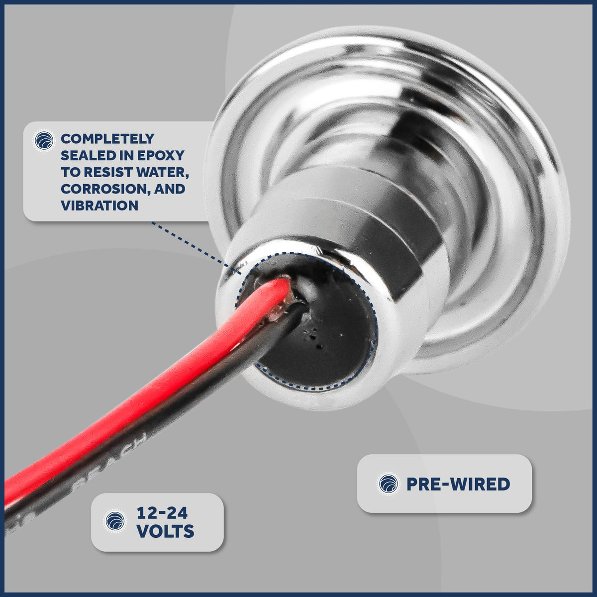DURABLE MATERIALS: Crafted from marine-grade high-impact chromed body, this courtesy light combines strength and luxury, making it a stylish and practical addition to any boat's interior or exterior.