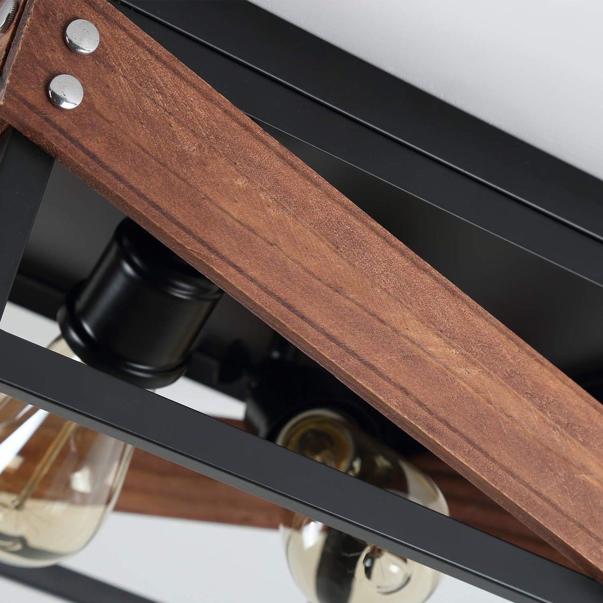 Q: What materials are used in the construction of this light fixture?A: The Rustic Industrial Flush Mount Light Fixture is made from a combination of metal and wood, designed to provide both durability and an attractive vintage industrial style.