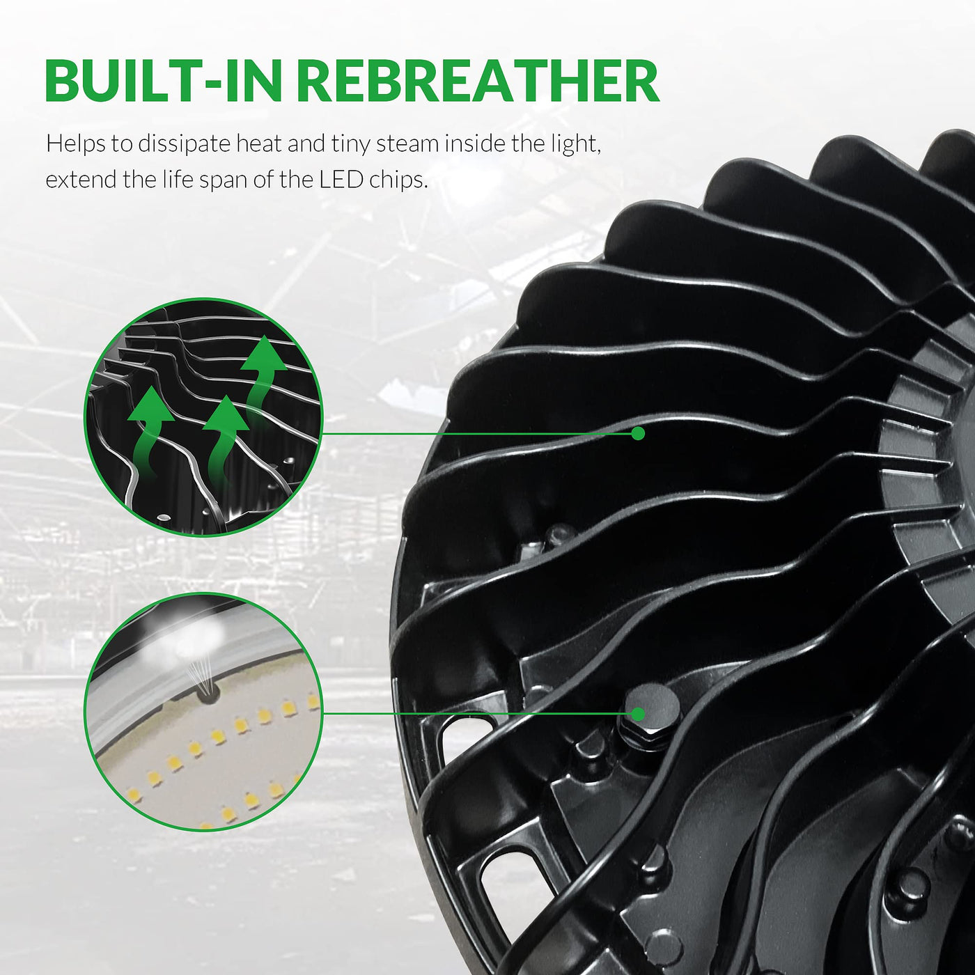Flakeeper Led High Bay Light 150W, 22500 Lm With Us Plug 5Ft Cable (150Lm/W), 5000K Daylight, Waterproof, Ufo Commercial Industrial Warehouse Workshop Factory Barn Garage Area Lighting Fixture, 2 Pack
