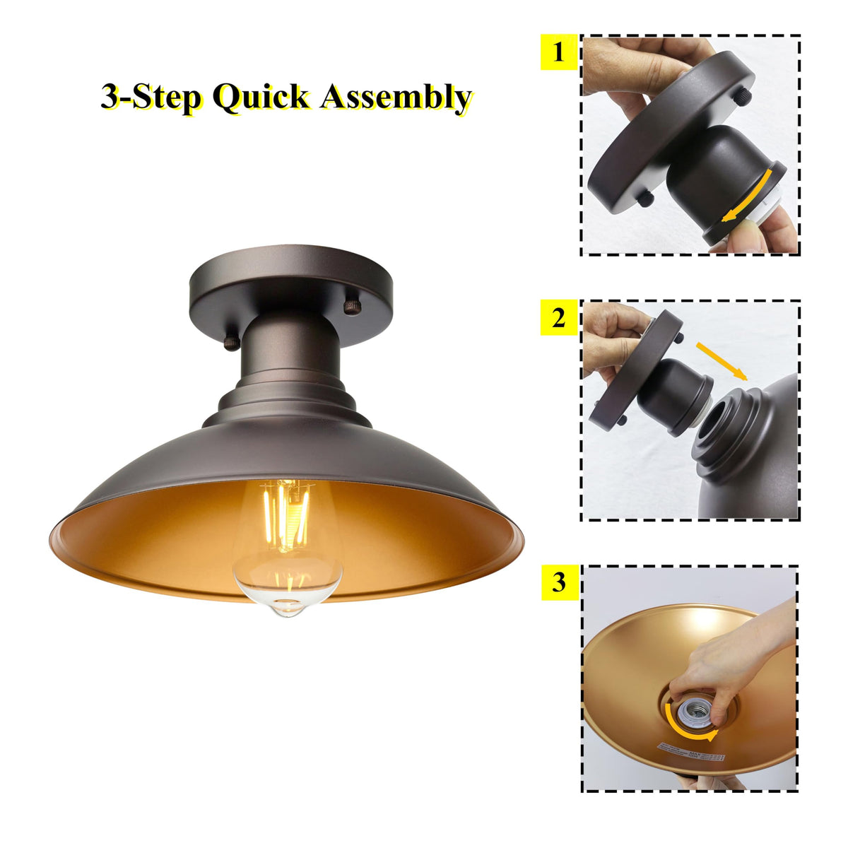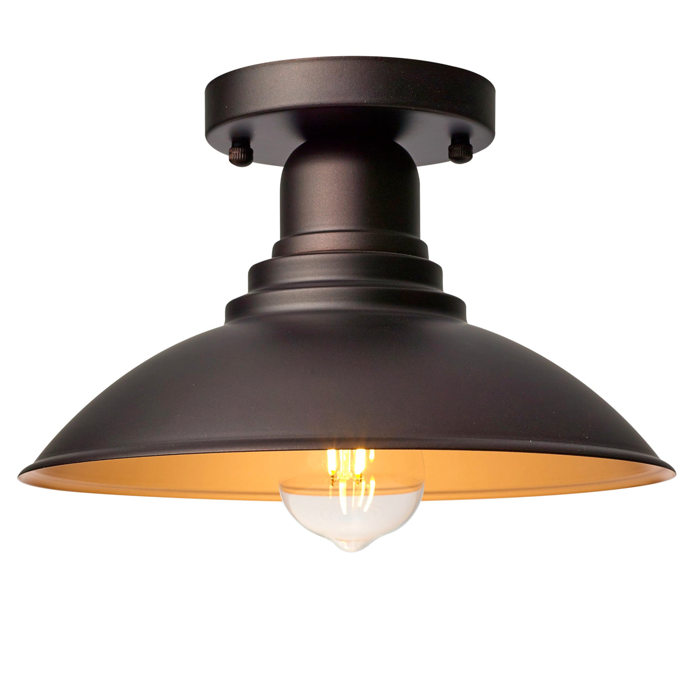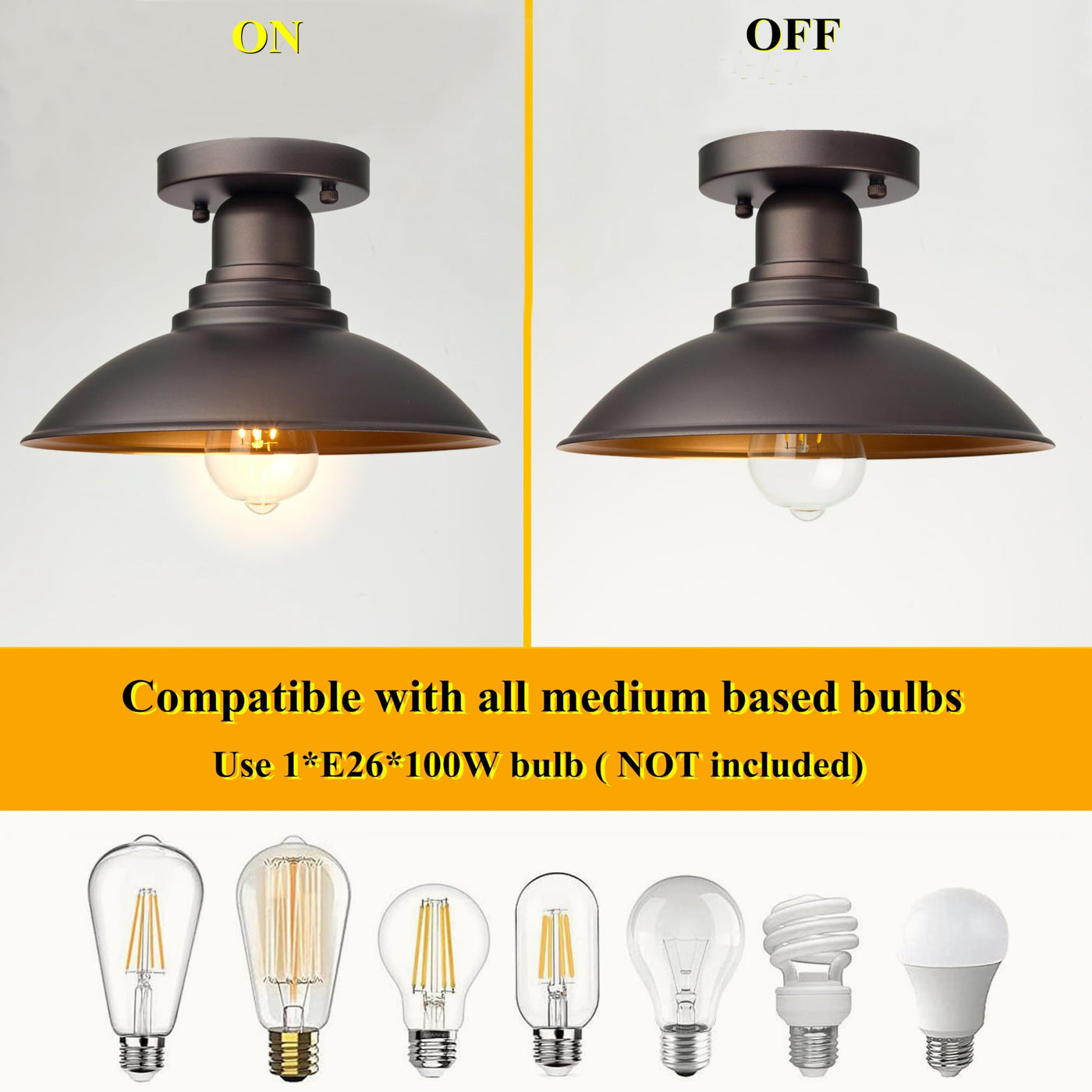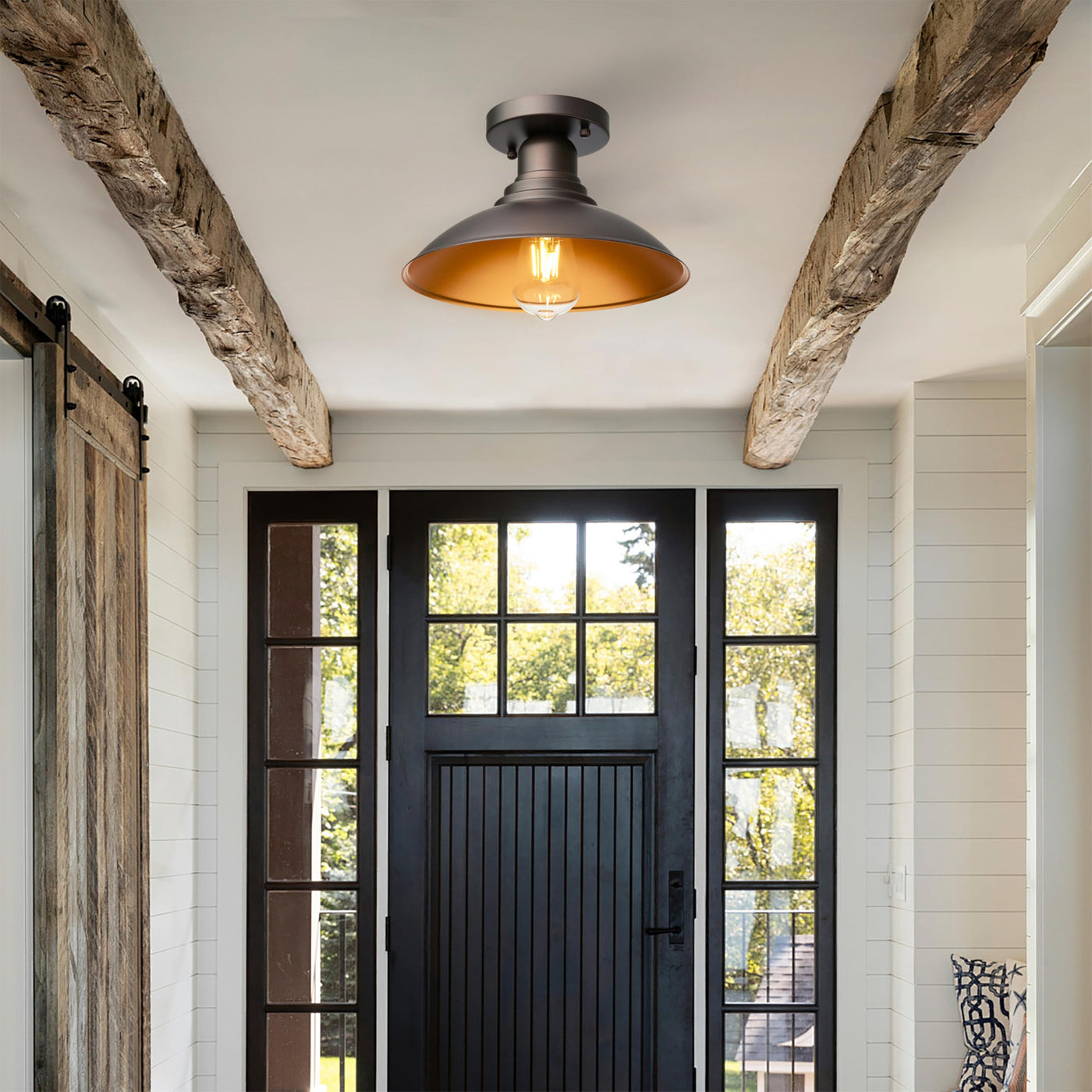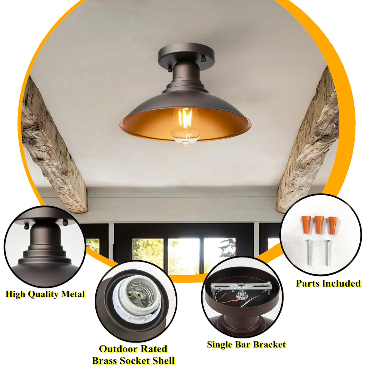 Flalinko Outdoor Semi Flush Mount Porch Light, Oil Rubbed Bronze With Gold Accents, E26 Based Socket, 9 Inch Farmhouse Metal Cei