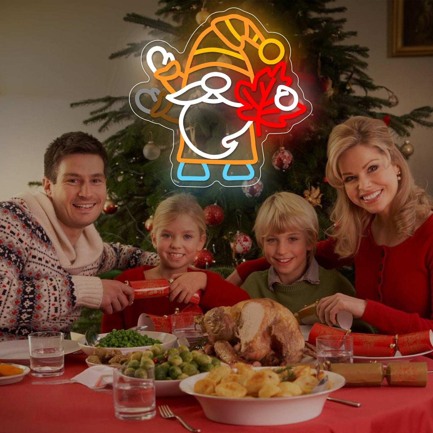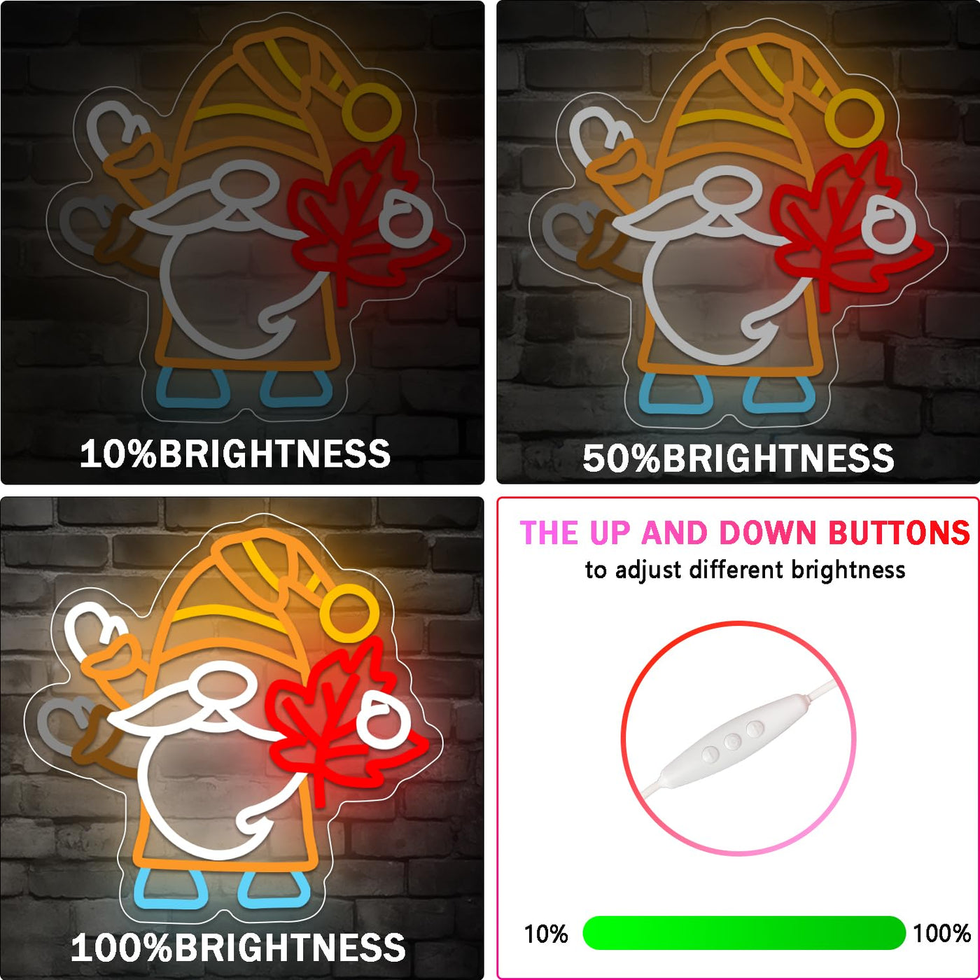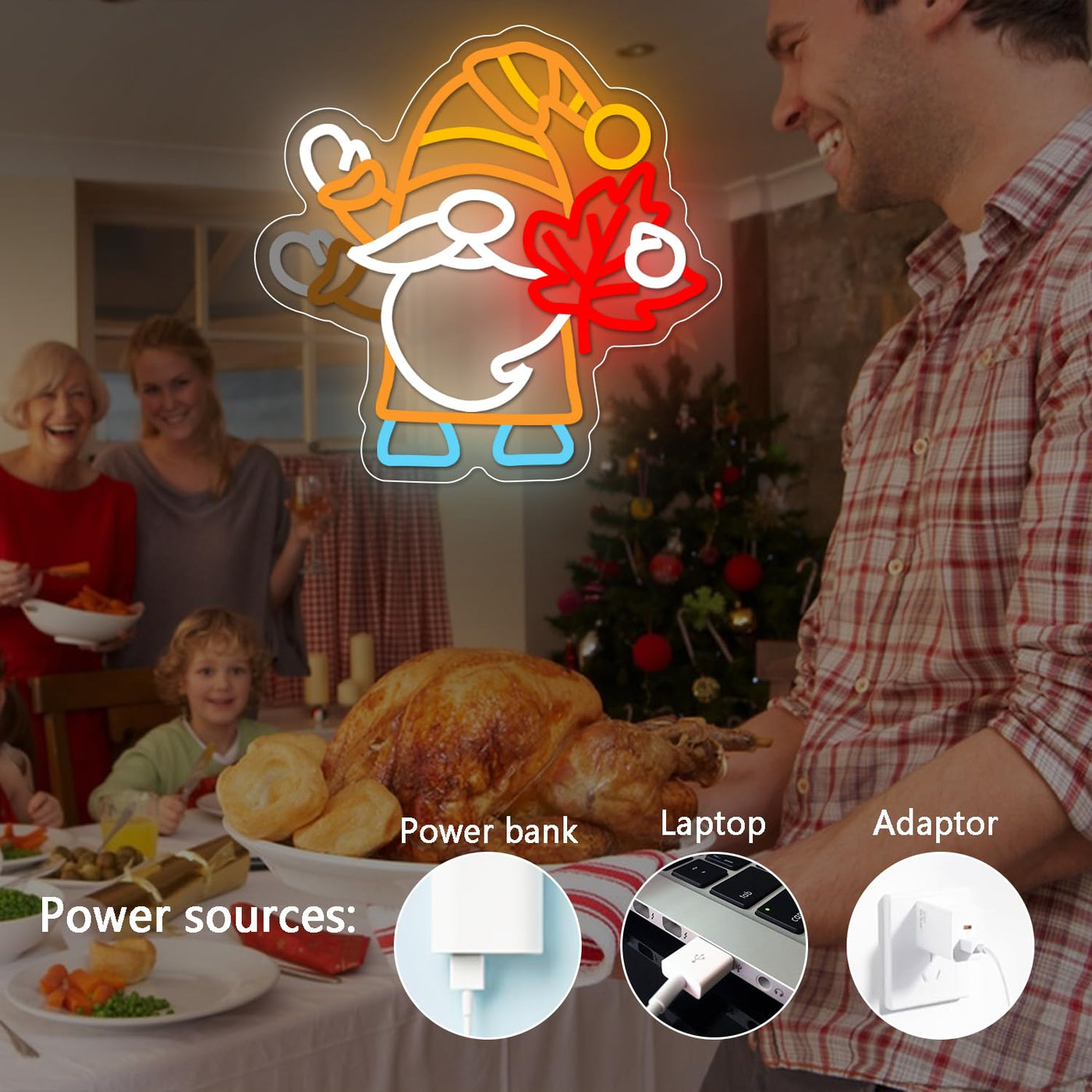 ?Thanksgiving Theme Design?: Maple Leaf And Gnomes As The Theme, The Flashing Gnomes Neon Sign Is Full Of Thanksgiving Elements, Exquisite And Colorful, And The Fall Neon Sign Will Add Some Interesting Atmosphere To Your Home, Allowing You To Enjoy The Party Well