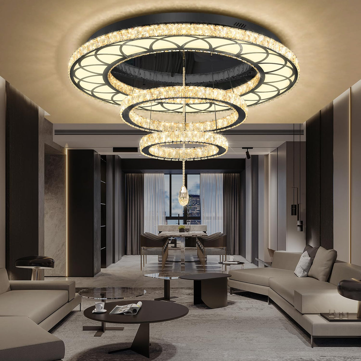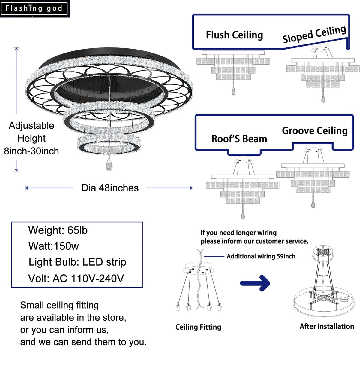 Flashing God Dia 48'' Large Chandelier Crystal Black Ceiling Light Fixtures Led Flush Mount Ceiling Light For Living Room Bedroo