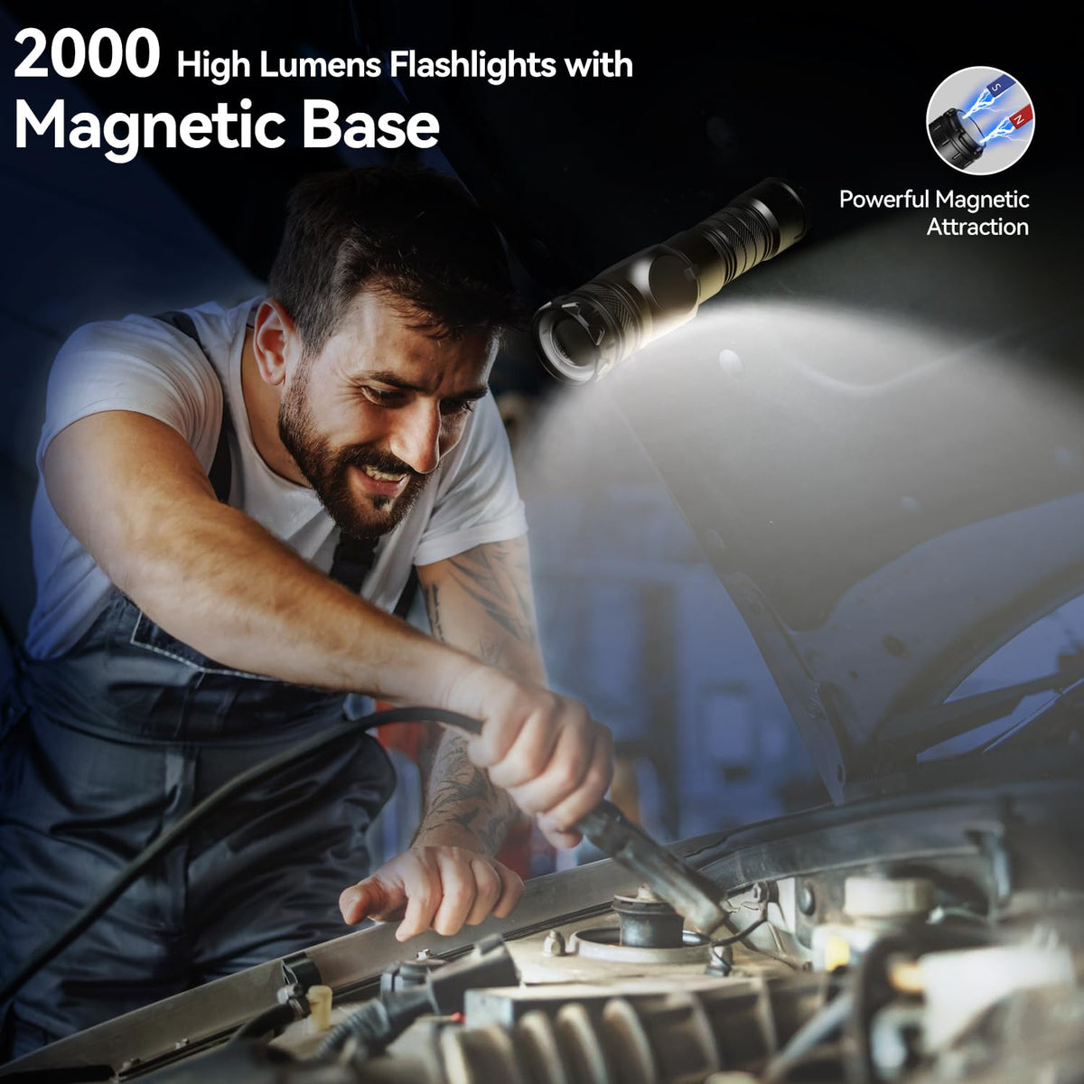 Flashlight Rechargeable 2000 High Lumens Ultra-Bright Covers 3200 ft Focus Up to 3900 feet,IPX7 Waterproof Tactical LED Flashlig
