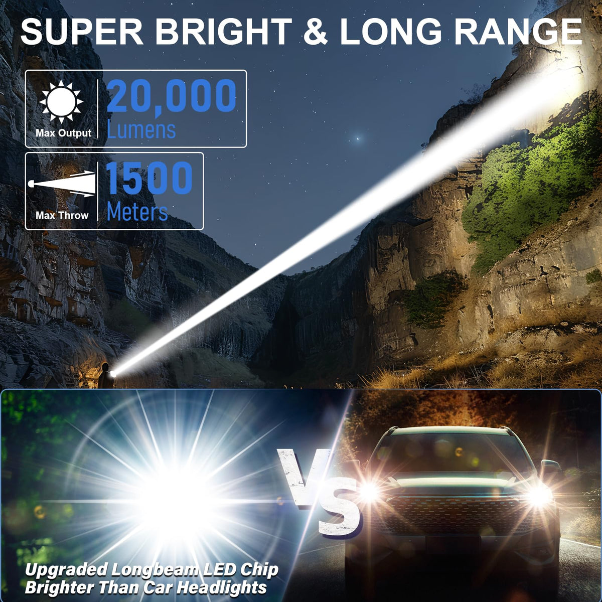 Flashlights High Lumens Rechargeable - 20,000 Lumens Super Bright Tactical Led Flash Light, Dimmable&Memory Function Powerful Wa