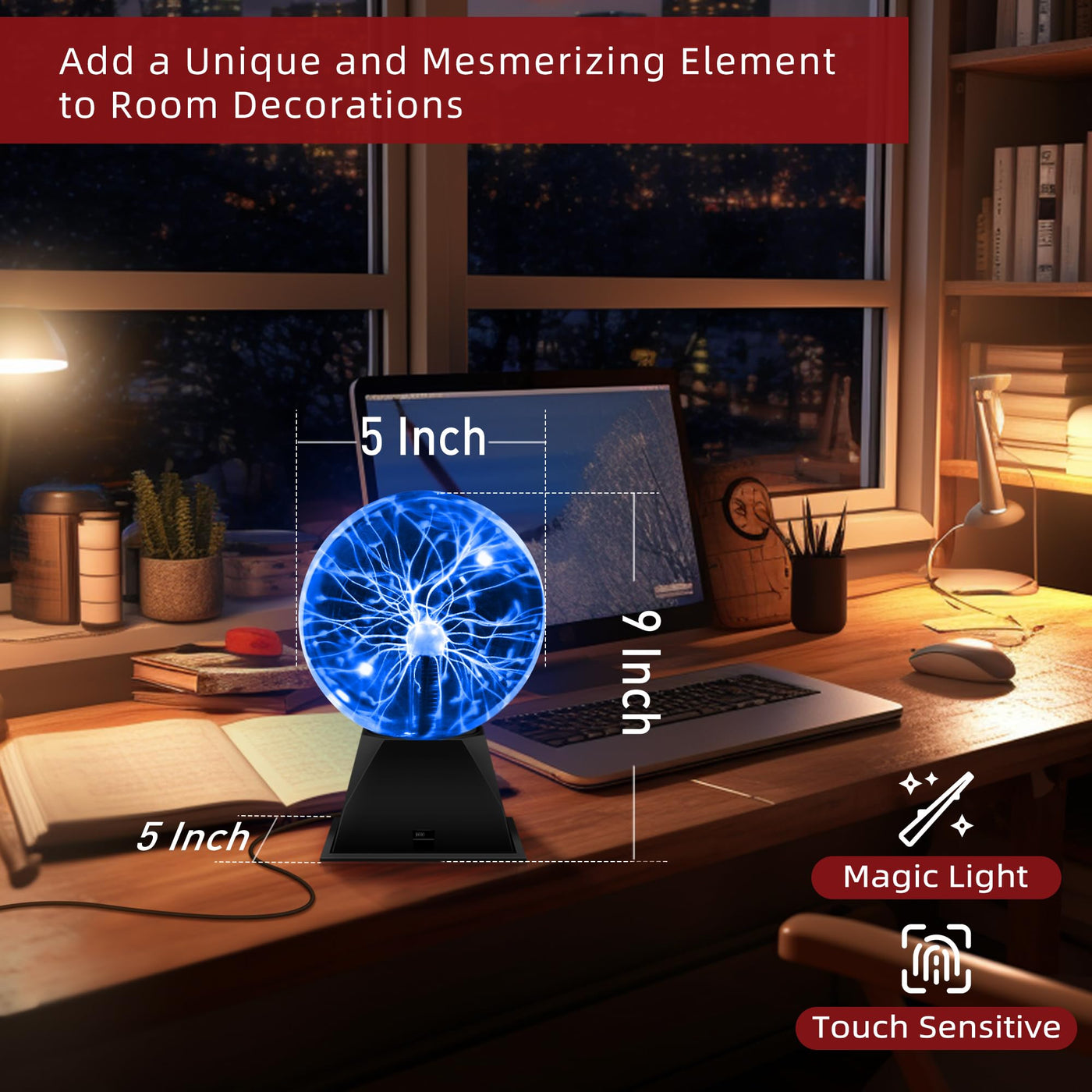 Extra Large 5 inch Plasma Ball Lamp Touch & Sound Sensitive Plasma Globe Decorative Lamp Lightning for Kids Bedroom Novelty Christmas Present