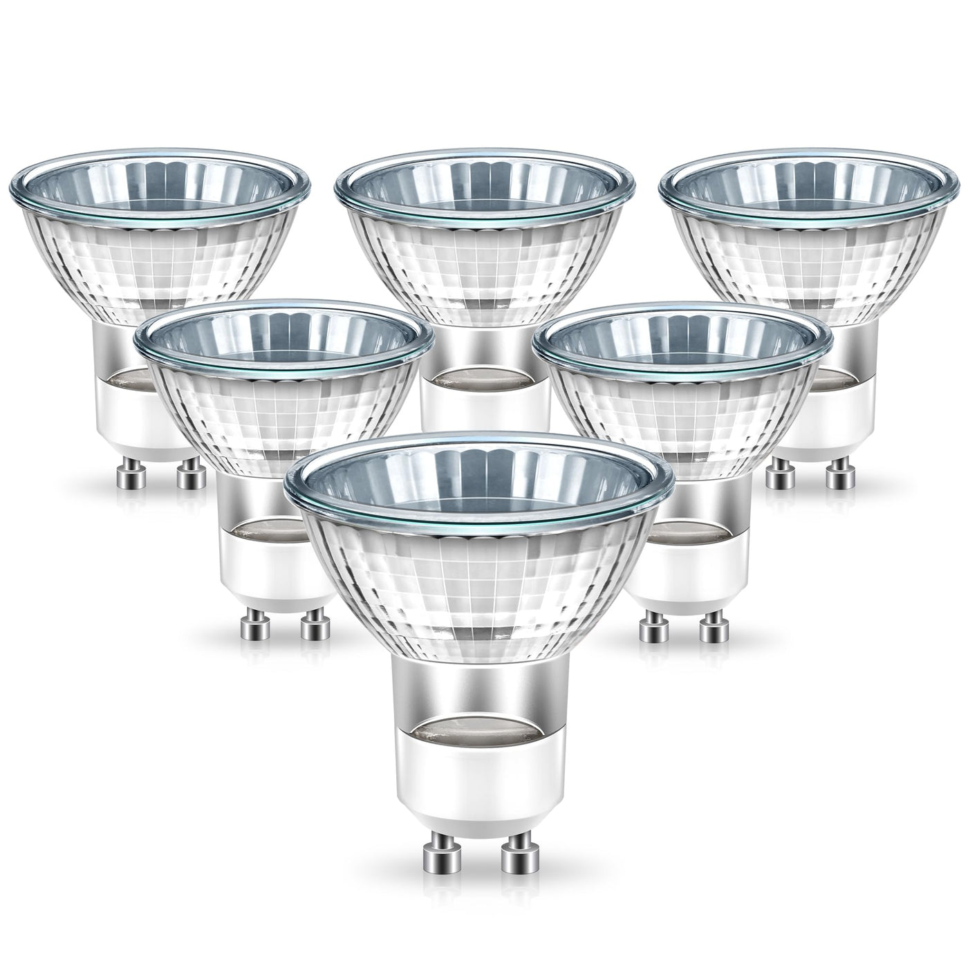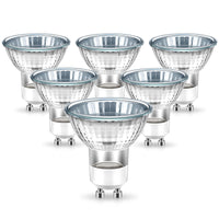 GU10 dimmable 100%-10% Smoothly dimming from 100% to 10%, gu10+c 120v 50w provides you the right amount of brightness to fit your needs. gu10 bulb contain no lead or mercury, Zero Flickering, protect your eyes and care your family. 50 watt gu10 halogen bulbs are ideal for residential and commercial lighting, such as recessed lighting, track lighting, accent lighting,and so on Technical Parameter Package: 6 pcs of GU10 light bulbs Brightness: 2250lm Wattage: 50W Color: 2800K warm white Voltage: 110V 120V 130V Base type: GU10 Beam angle: 38 degrees Dimming range: 100%~10%