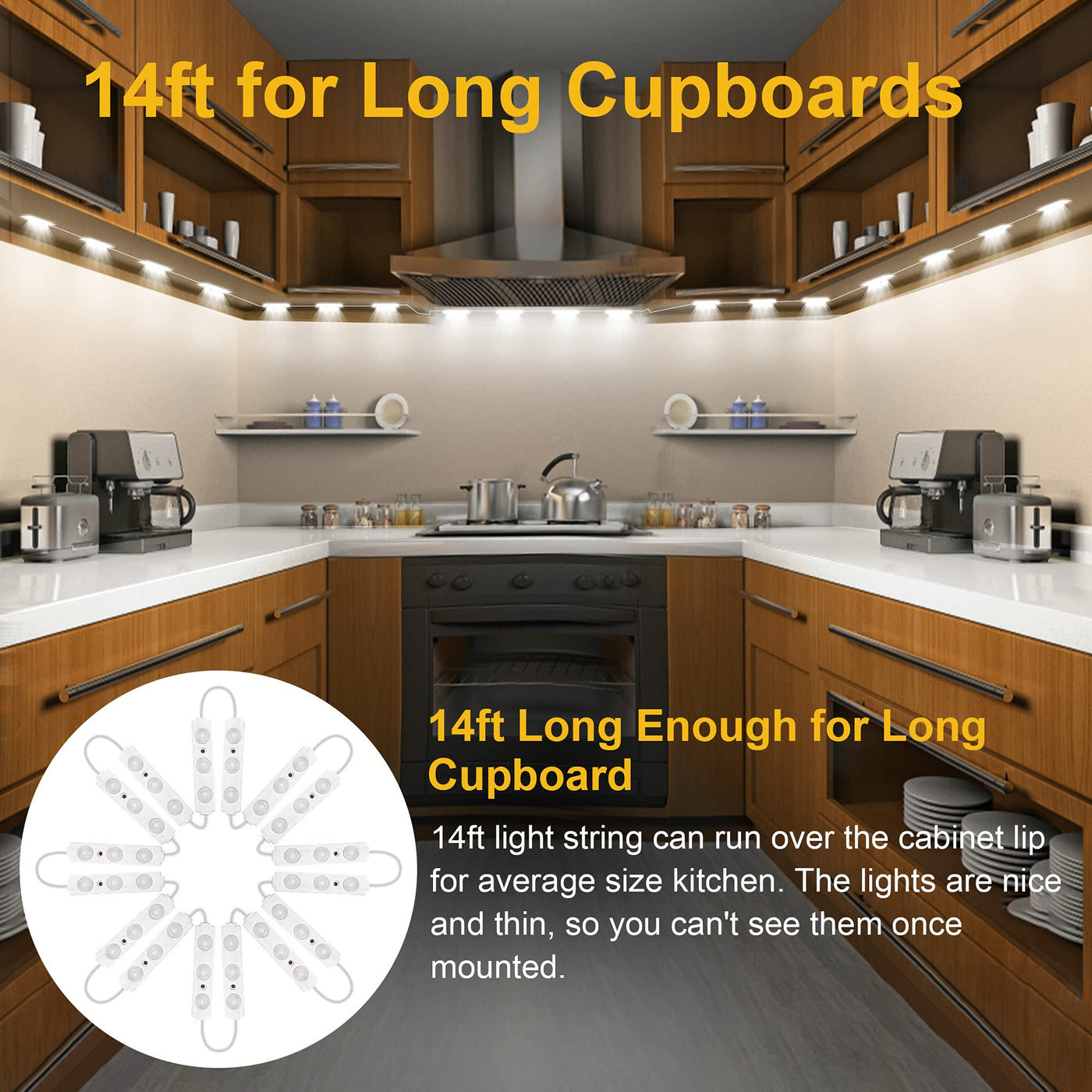 Q: Are these lights suitable for use in kitchens?A: Absolutely! These lights are perfect for under-cabinet lighting in kitchens, providing bright illumination that can transform darker areas into well-lit spaces.