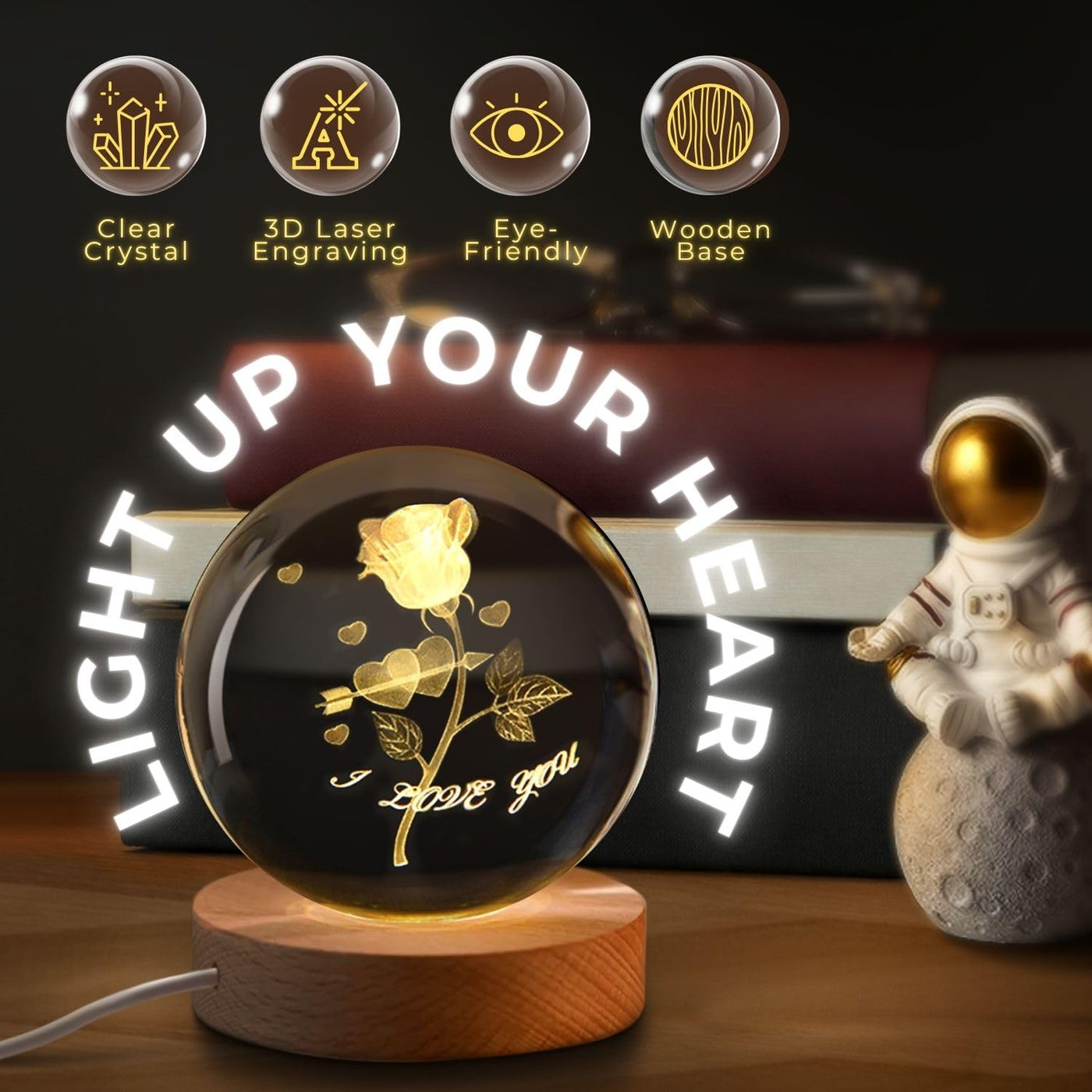 Illuminate Your Surroundings With The Enchanting Glow Of Flexzion'S Rose Light. This Captivating Decor Piece Is A Timeless Addition To Any Room. Whether Displayed In A Home, Office, Or Classroom, This 3D Crystal Ball Night Light Promises To Bring A Touch Of Elegance To Your Space.At The Heart Of Each Night Light Is A Flawlessly Clear Crystal Sphere, Expertly Engraved With The Rose In Stunning 3D Detail. Resting On A Solid Beech Wood Base, The Rose Glass Lamp Is An Artistic And Sustainable Choice That Blends Seamlessly With Any Interior Design.Built-In Led Lighting Within The Rose Glass Ball Adds A Soft, Soothing Illumination, Highlighting The Intricate Engravings. With An Intuitive One-Touch Control, The Light Easily Switches On And Off, While A Longer Press Adjusts The Brightness To Your Desired Level, Creating The Perfect Ambiance For Relaxation.Powered By A Convenient Usb Connection, This Glass Ball Lamp Lights Up Without The Need For Batteries Or An Electrical Outlet Nearby. Compact And Portable, It Can Accompany You Wherever You Go.Add This Stellar Crystal Ball Led Light To Your Collection And Let It Shine In Your Everyday Life.Specification:Material: Crystal, Beech Woodsphere Size:60Mm Diameter;Base Size: 20Mm X 60Mm (Hxd)Power: Usbpackage Content:1X 3D Rose Crystal Ball Night Light - Led Glass Light Hologram Lamp With Solid Wood Base, Usb Powered Ball Lamp With Adjustable Brightness For Home Decor Display Gift, 2.4Inch(60Mm)