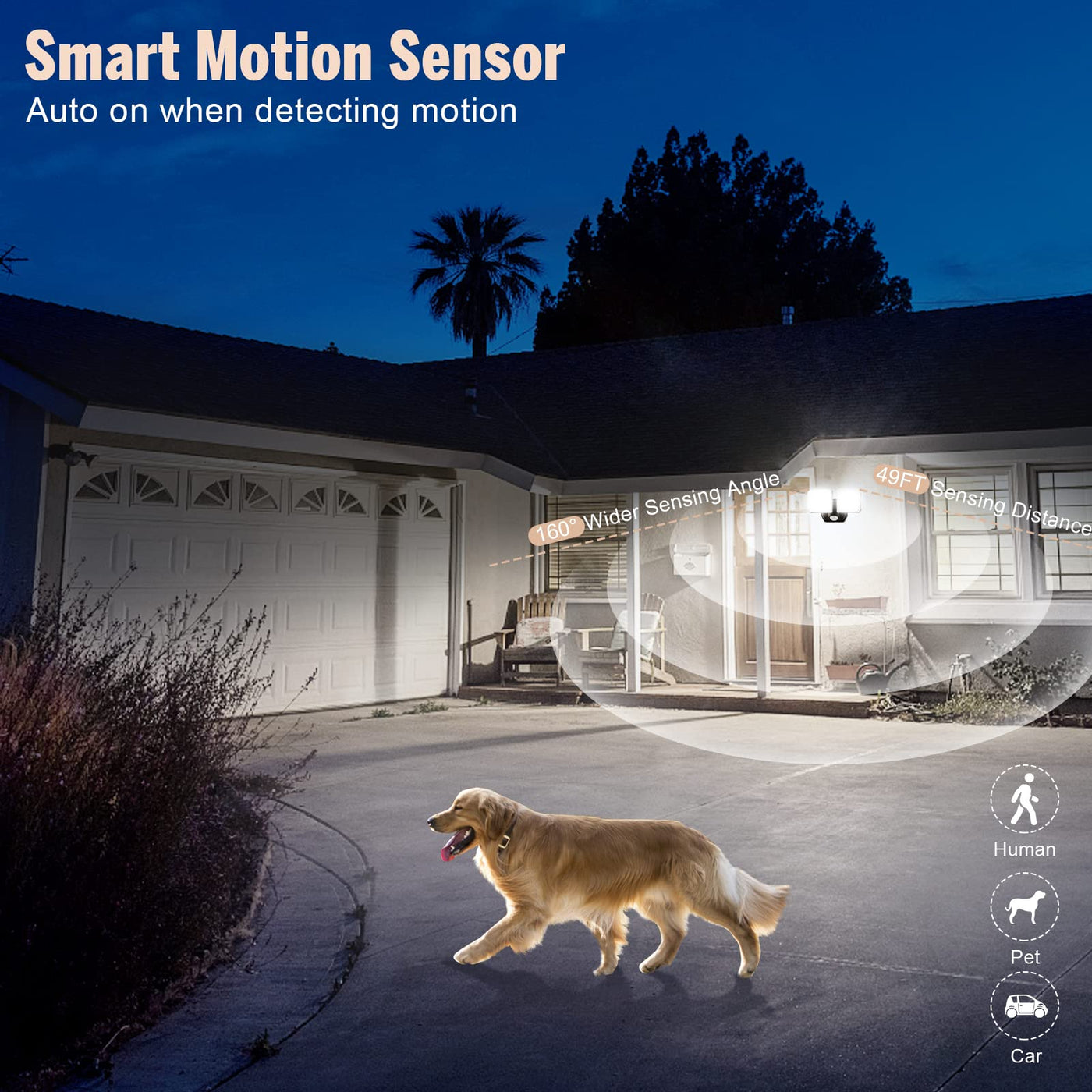 Q: What is the sensing distance of this motion sensor light?A: The FLITI flood light has a maximum sensing distance of 49 feet and offers adjustable settings for sensing distance and lighting duration, providing flexibility for different scenarios.