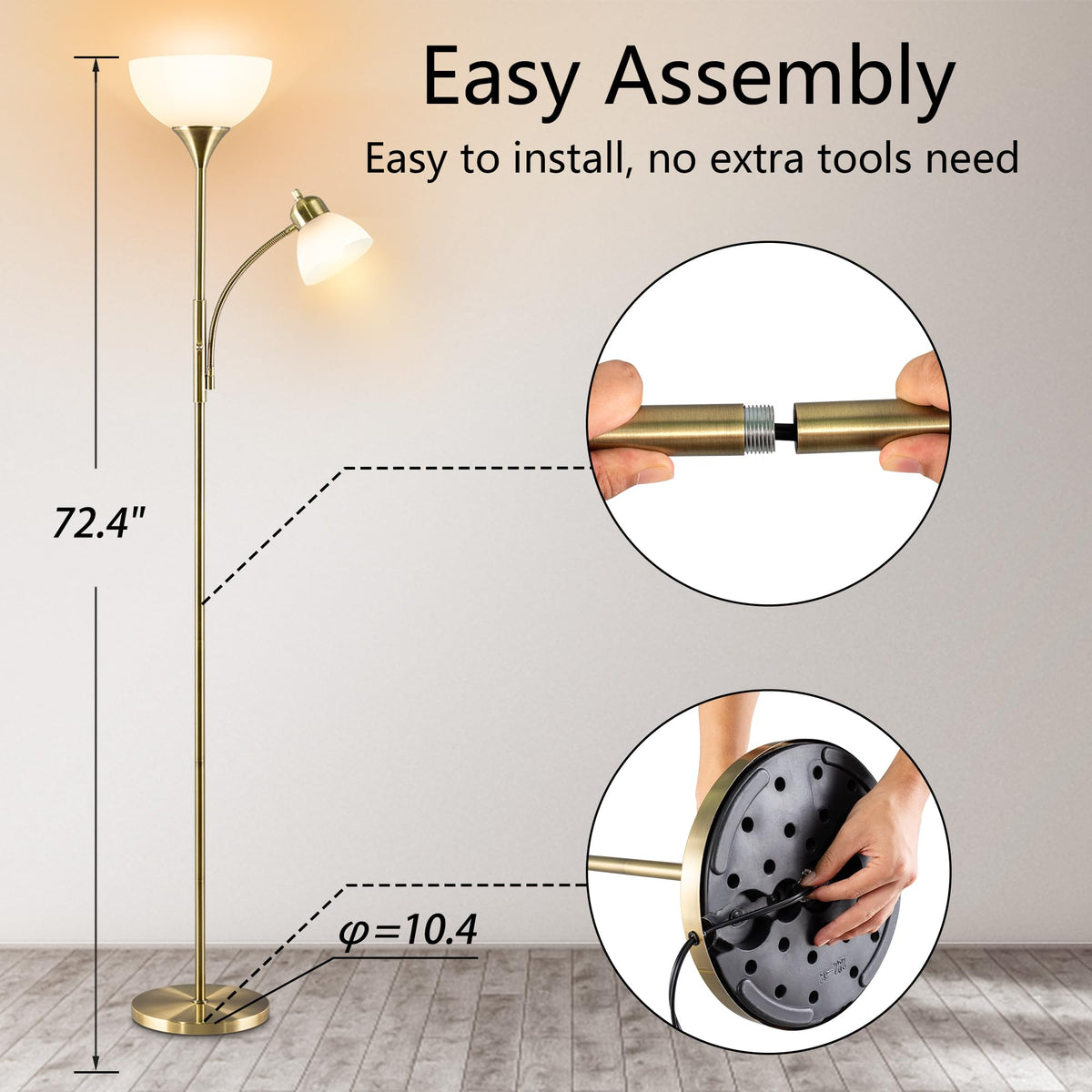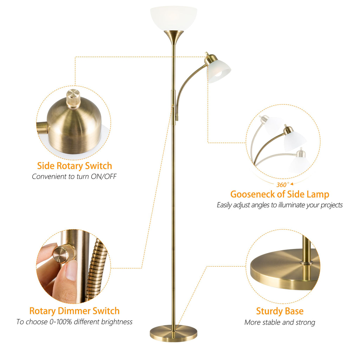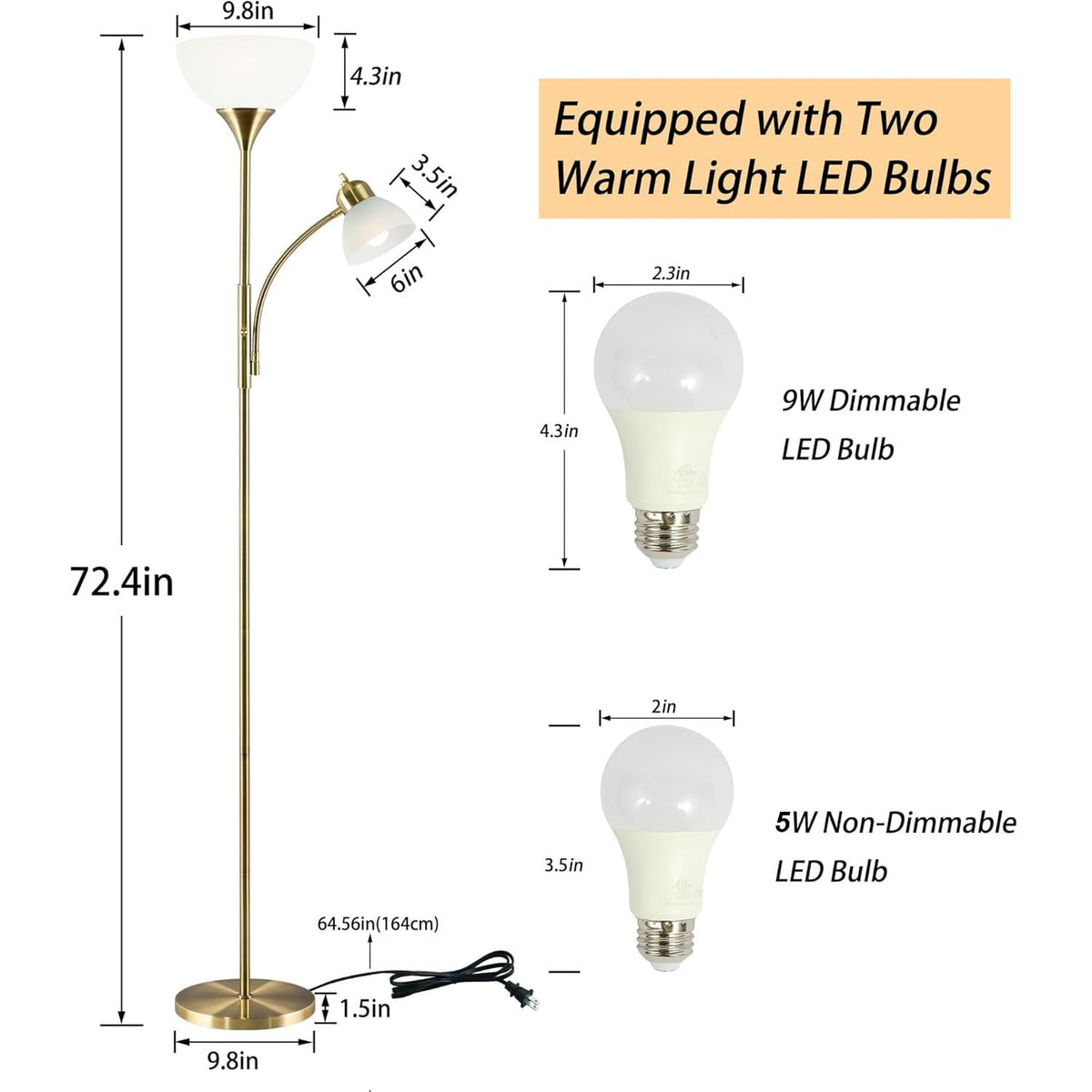 Floor Lamp, Dimmable Standing Lamp, 3 Levels Dimmable Brightness, Included 9W And 5W Led Bulbs, Industrial Floor Lamp For Living
