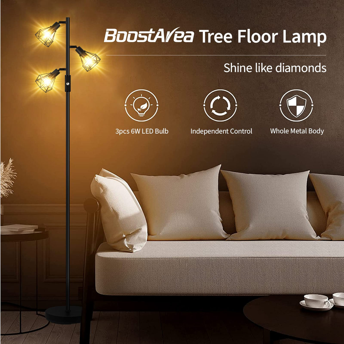 Floor Lamp, Industrial Floor Lamps For Living Room,Tree Standing Lamp Bright With 3 Charm Diamond Head 1200 Lumens Edison Bulbs