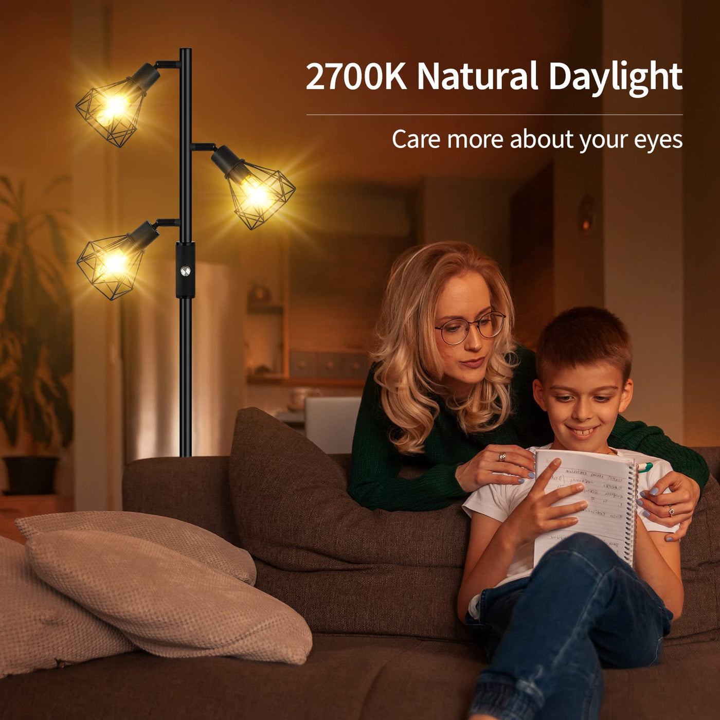 Q: What is the brightness of the floor lamp and how many bulbs does it use?A: The floor lamp emits a bright 1200 lumens using three Edison-style LED bulbs, each rated at 4W. This ensures ample lighting for various settings, making it ideal for living rooms, bedrooms, and offices.