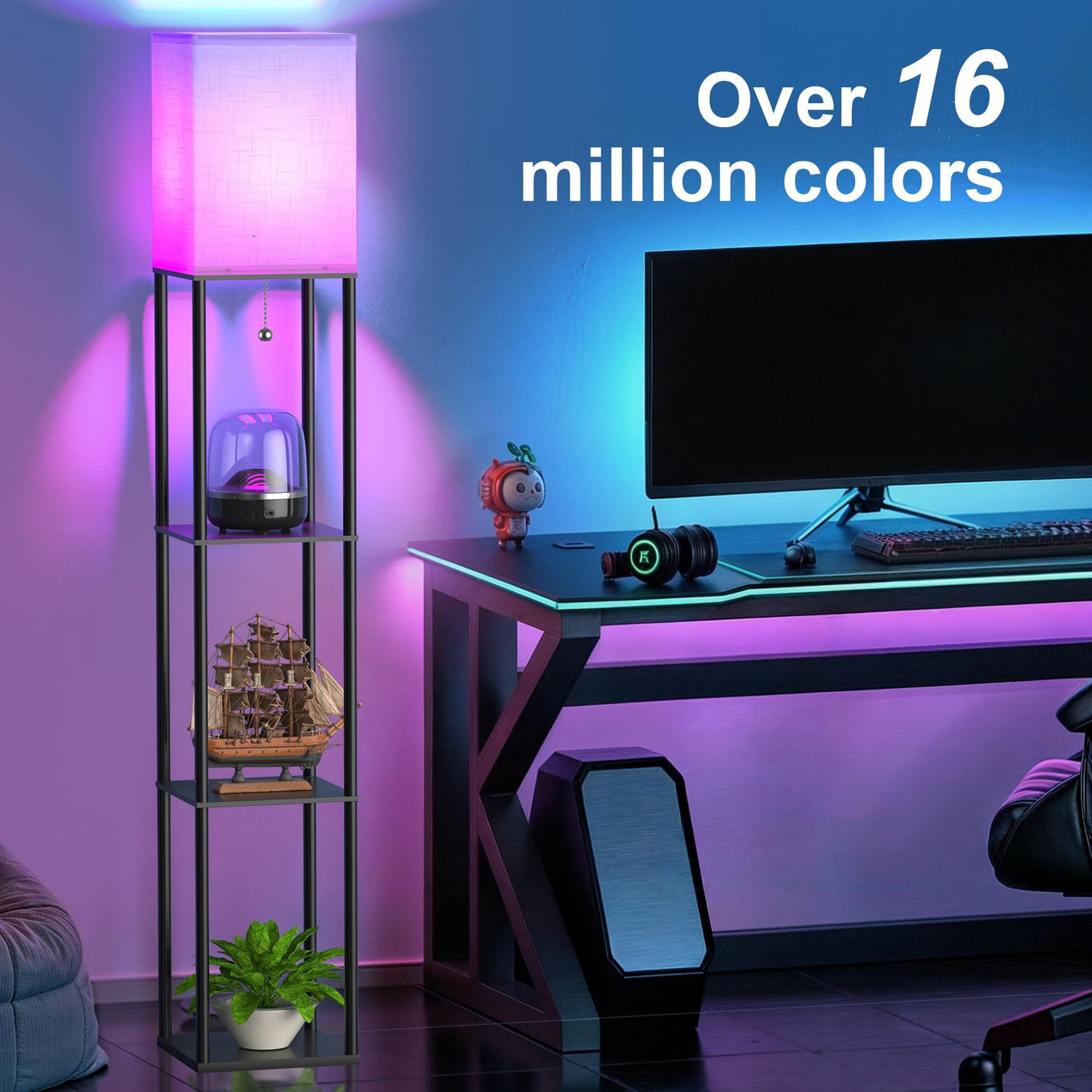 Q: How do I set up the Floor Lamp with Shelves for my smart home?A: Setting up the Floor Lamp is easy. Simply scan the QR code on the bulb or in the user manual using the Alexa App, Google Home App, Apple Home App, or SmartThings App to connect it quickly to your smart home network.