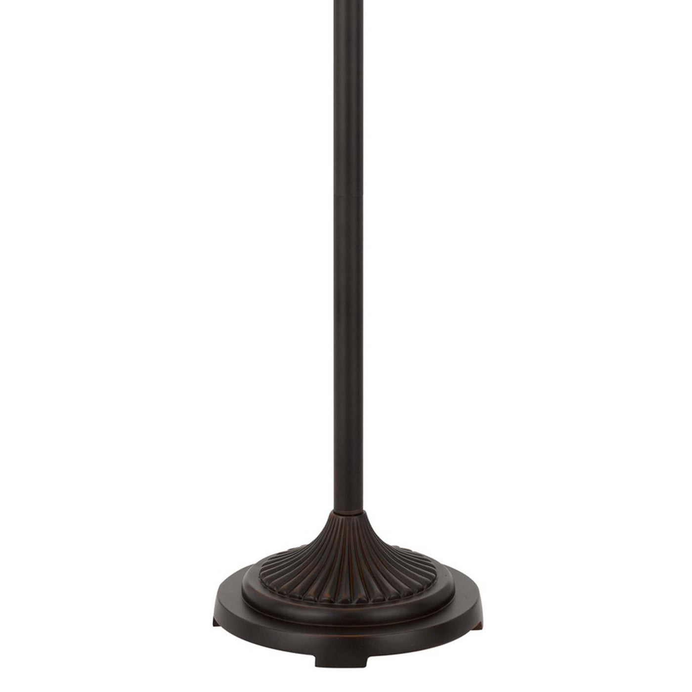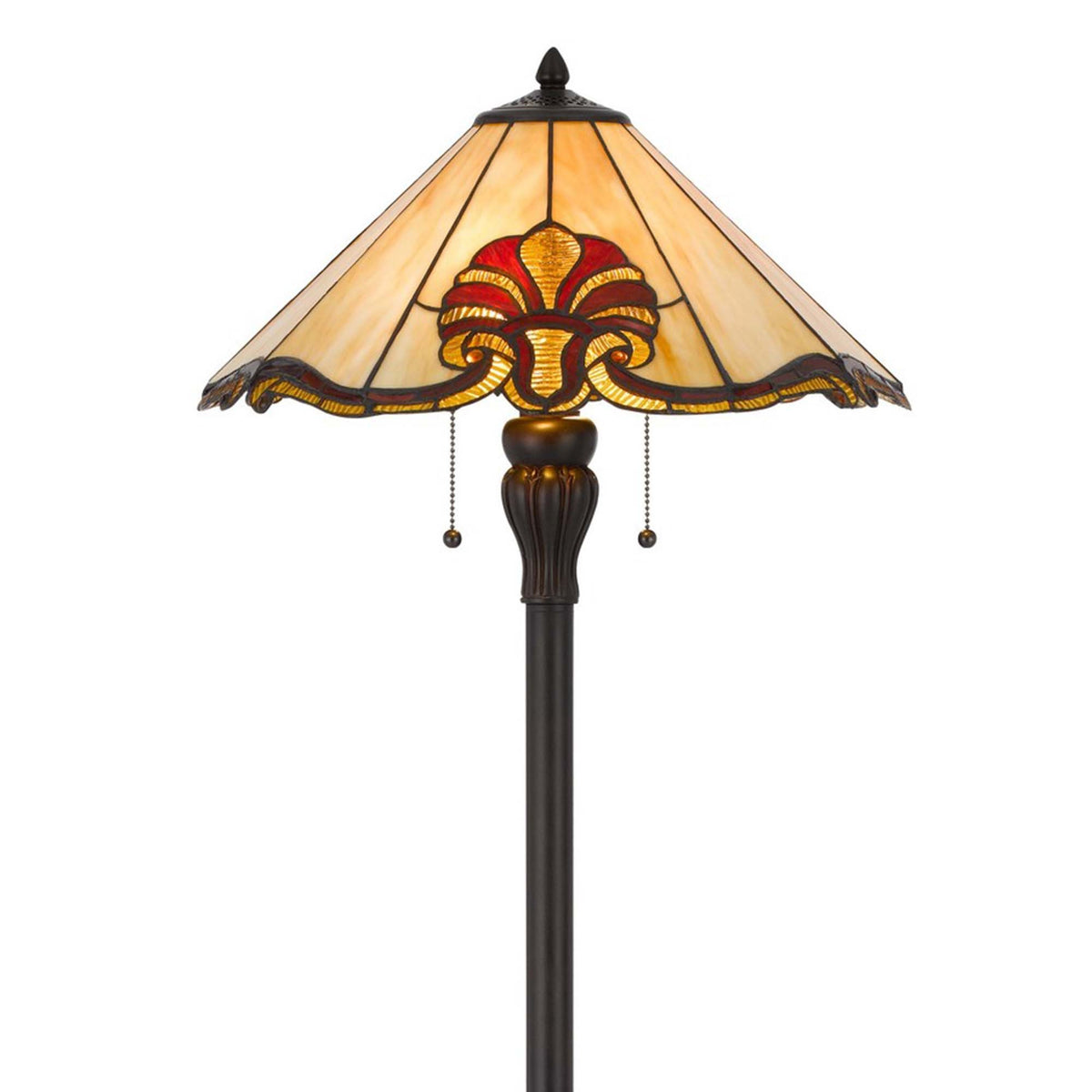 Quality craftsmanship meets transitional style with this Floor Lamp. Incorporated with an umbrella tiffany style shade and dual pull chain switches, it rests on a resin and metal frame base with dark bronze tone embellishment.