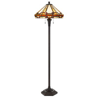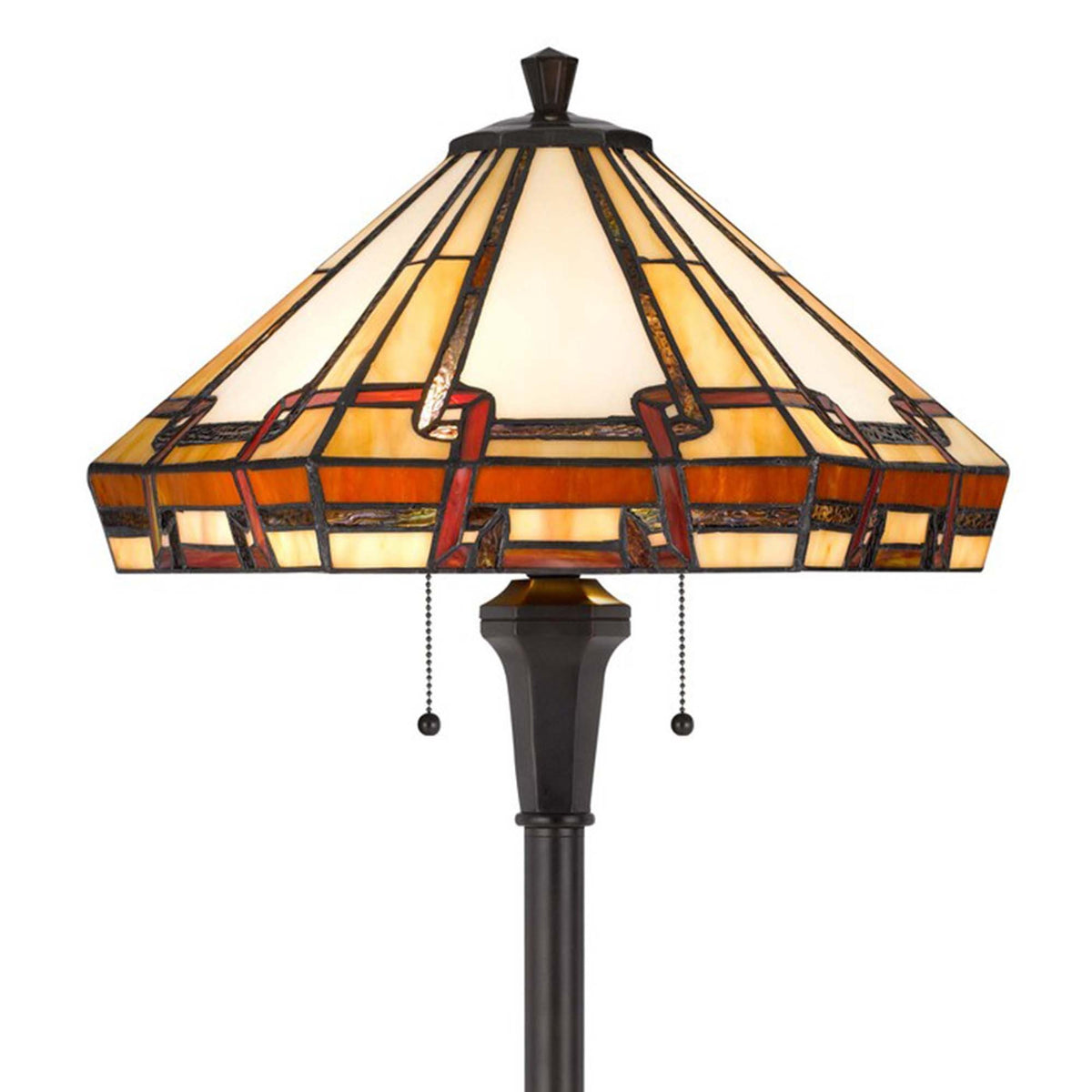 Quality craftsmanship meets transitional style with this Floor Lamp. Incorporated with a tiffany style shade and dual pull chain switches, it rests on a resin and metal frame base with dark bronze tone embellishment.