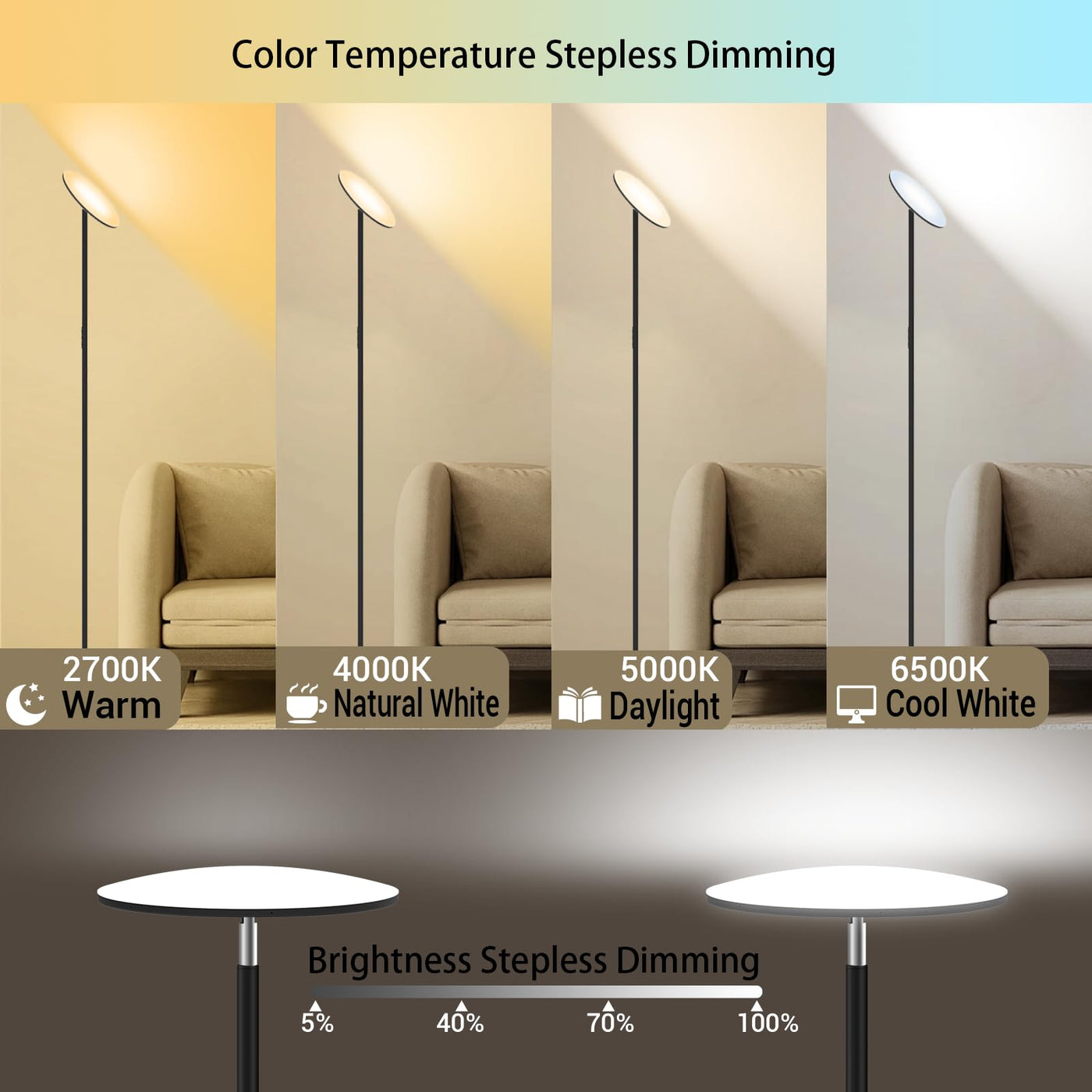 Floor Lamps For Living Room, 36W/3600Lm Super Bright Standing Lamp With Remote & Touch Control, Stepless Dimming & 2700K-6500K C