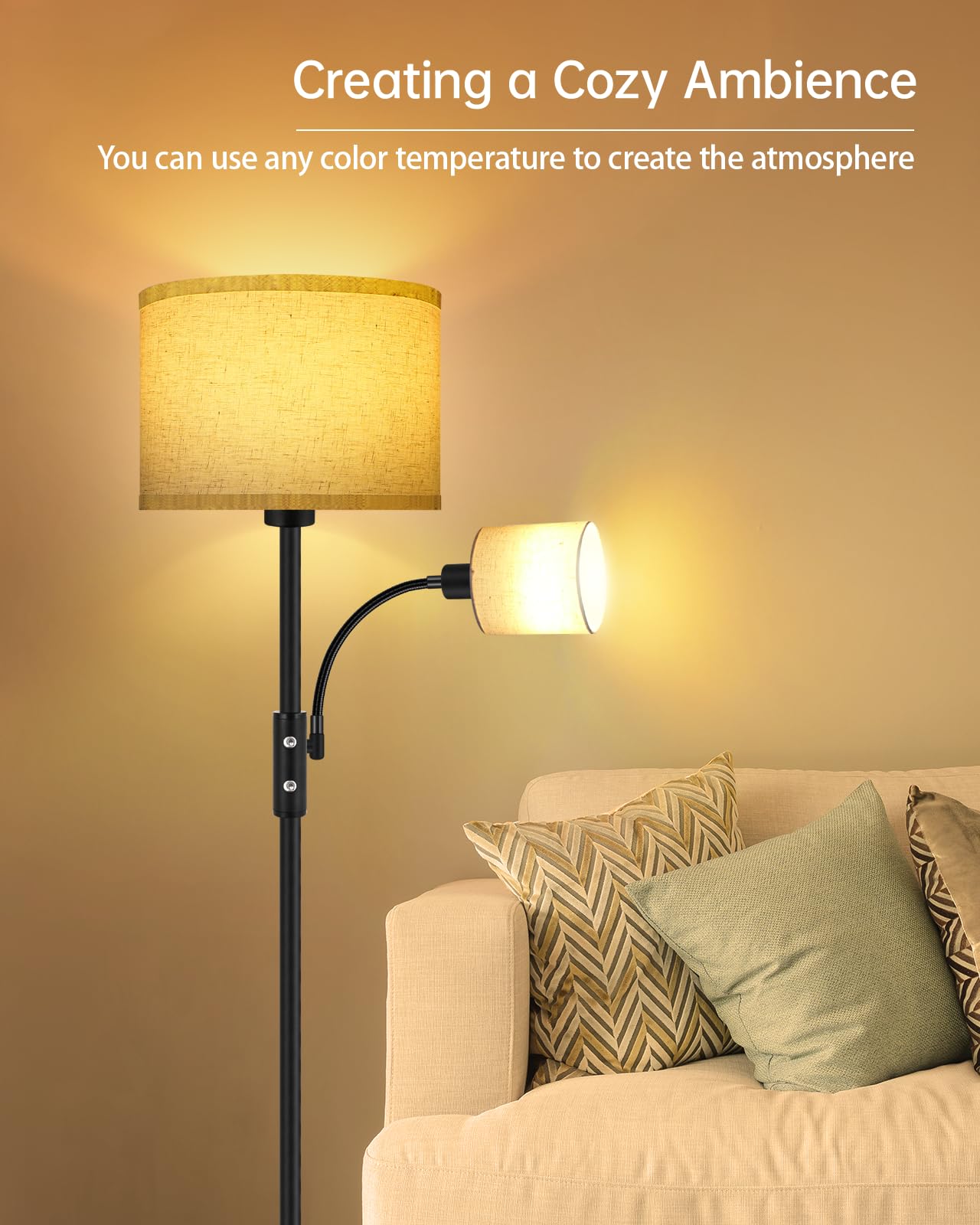 Led Floor Lamps For Living Room, 9W Floor Lamp With 4W Adjustable Reading Light, 3-Brightness Level, Modern Floor Lamp With Linen Lampshade, Led Standing Lamp For Bedroom, Office, Farmhousethis Boostarea Floor Lamp Features A Unique Double-Lights With Linen Lampshade, Independent Switch Design With 3-Brightness, Which Will Be The Great Decoration For Bedrooms Or Office. The Tall Pole Is Made From High Quality Metal In A Matt Finish, And The Thick Circular Base Can Keep This Lamp Still Standing. The Linen Lampshade Is Easy To Install, And The Beside Reading Light Allows You To Adjust Angles To Illuminate Your Projects, Like Reading, Working Or Daily Use. The Floor Lamp Is Decided With The Independent Switch Can Control Each Light For Three Levels Brightness, Which Will Provide More Choose For Reading, Sleeping, Working. Aside From Beautifying Your Home, You Can Also Save Up On Your Electrical Bills With Its Led Bulb.Specification:1. Floor Lamps For Living Room With Built In A E26-Socket Base And 9W Led Bulbs, E12-Socket Base And 4W Led Bulbs (Small Reading Light).2. Led Floor Lamp With Linen Lampshade: 11 L X 10 W X 69 H In.3. Black Pole Standing Lamp4. Stand Up Light With 3-Way Switch5. Floor Lamp For Bedroom With Reading Light6. Floor Lamp For Bedroom With 6-Foot Cordfeatures:&Nbsp;&Nbsp;??Modern Floor Lamp With The Linen Lampshade - Perfectly Match With Both Modern And Traditional Decor??Standing Floor Lamp With Reading Light - Provides The Focused Light While Reading Or Sewing??Stand Up Light - Fits In Your Living Room, Bedroom, And Office??Torchiere Floor Lamp - Modern Style For A Corner Lamp??Mid Century Modern Floor Lamp With E26 Base(9W Led Bulb Included) And E12 Base(4W Led Bulb Included)&Nbsp;??Tall Floor Lamp With Easy Turn On/Off Switch??6Ft Long Cable