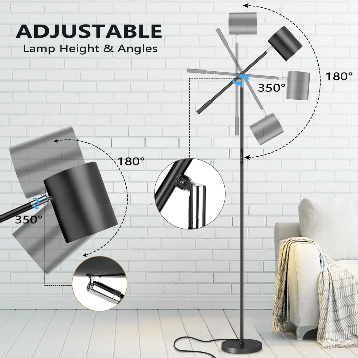 Floor Lamps For Living Room, Modern Stepless Dimmable Standing Lamp With Remote & Touch Control, Adjustable Swing Arms 73'' Tall