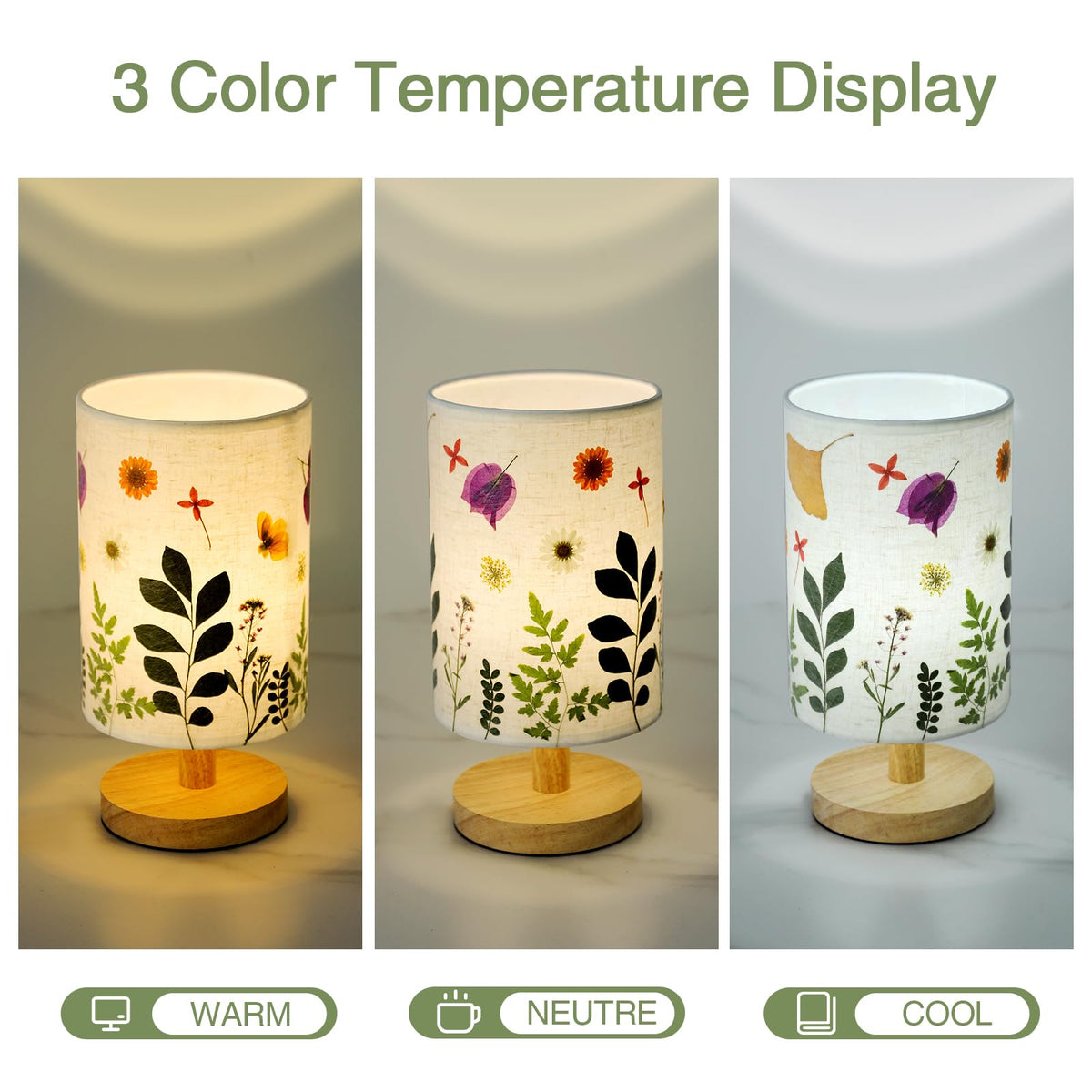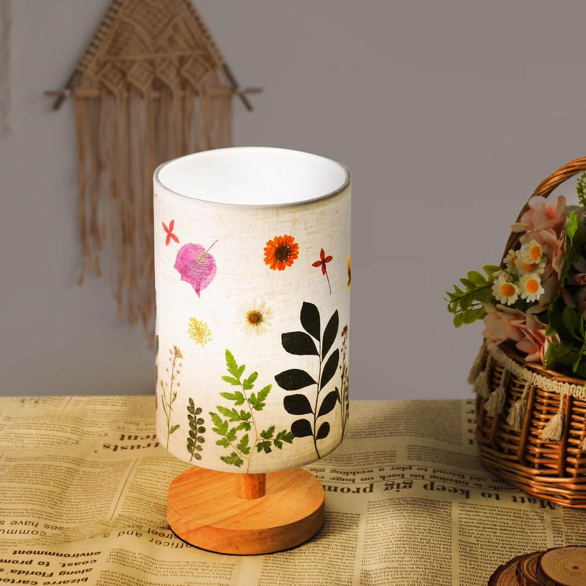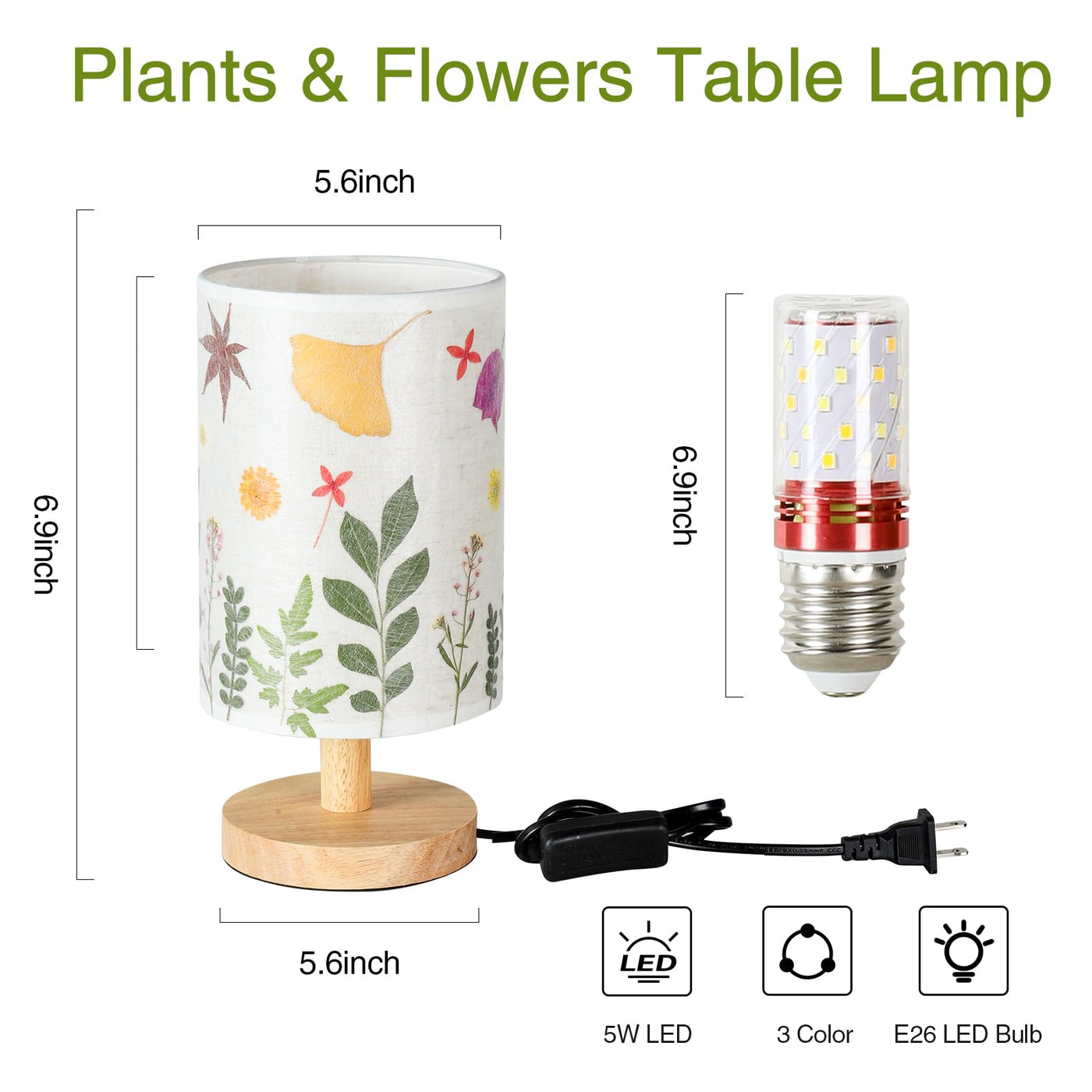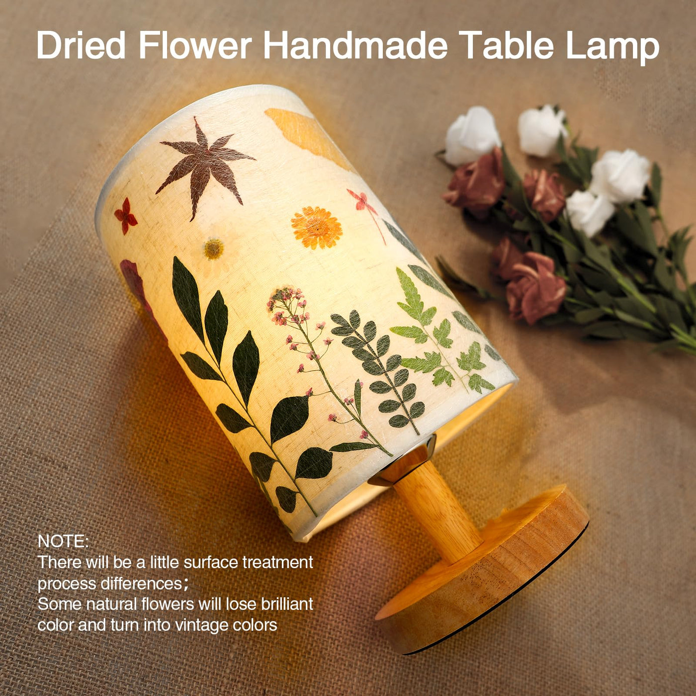 Floresita Pressed Flowers Table Lamp 5W Led Dried Flower Bedside Lamp Linen Shade Table Lamp With Wood Base For Bedroom Living R
