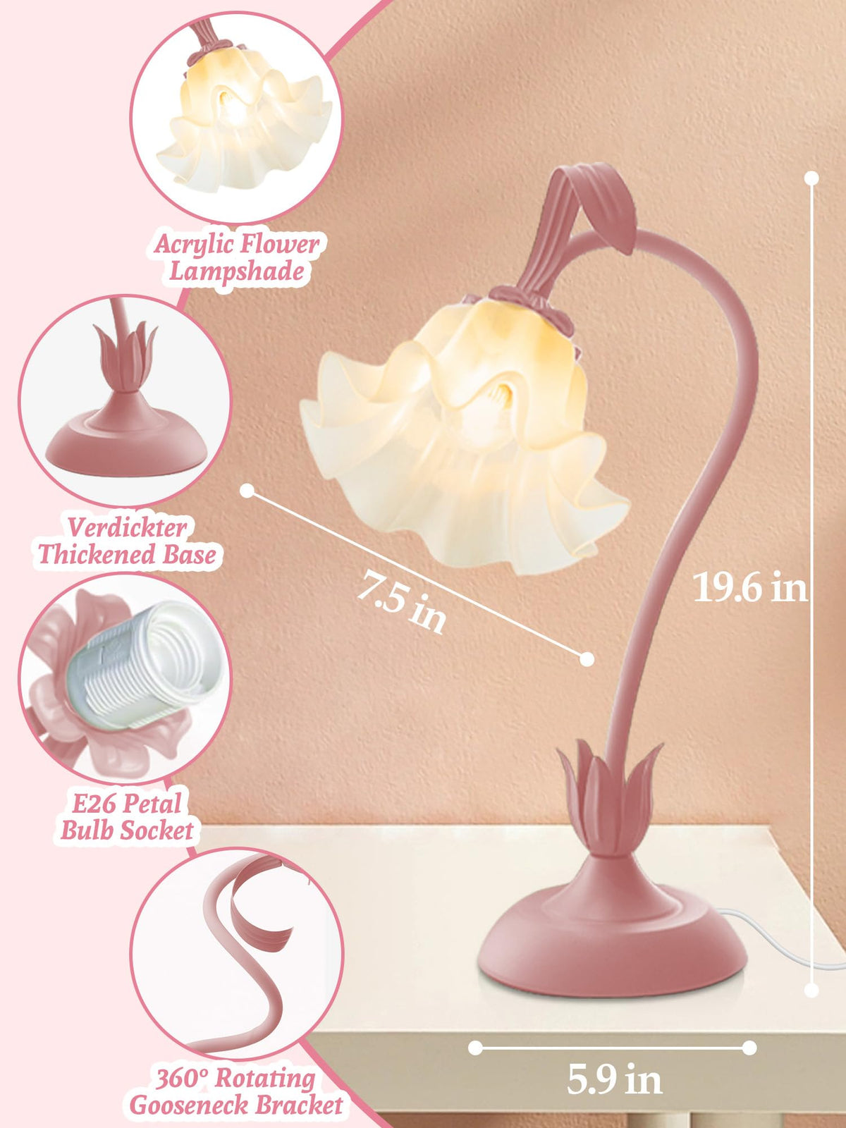 Discover The Perfect Blend Of Elegance And Versatility With Our Vintage Flower Table Lamp. Designed With A Unique Suzuran Flower Motif, This Lamp Adds A Serene And Artistic Touch To Any Room, Whether It'S Your Living Room, Bedroom Retreat, Or Office Sanctuary. Enjoy Personalized Lighting With Our Lamp'S 360 Flexible Gooseneck, Allowing You To Effortlessly Adjust The Angle For Optimal Illumination. Choose From Three Color Temperature Settings-Warm, Cool, And Neutral-And Utilize The Dimmable Feature To Create The Perfect Ambiance For Any Task Or Mood. Not Just A Bedside Companion, Our Lamp'S Sleek Design Fits Seamlessly On Any Table Or Surface, Enhancing Both The Aesthetic And Functionality Of Your Space. It'S The Ideal Choice For Reading, Working Late Nights, Or Simply Adding A Touch Of Warmth To Your D Cor. Celebrate Special Occasions With A Gift That'S As Stylish As It Is Thoughtful. Our Vintage Flower Table Lamp Makes A Wonderful Gift Choice, Bringing Beauty And Warmth To The Lives Of Your Loved Ones. Whether It'S A Birthday, Anniversary, Or Housewarming, This Lamp Is Sure To Delight. Each Lamp Is Crafted With Care To Ensure Durability And Elegance, Making It A Standout Addition To Any Home Or Office. Product: Flower Table Lamp Size: 5.9 Inches Deep X 5.9 Inches Wide X 19.3 Inches High Bulb: Included Bulb Base: E26