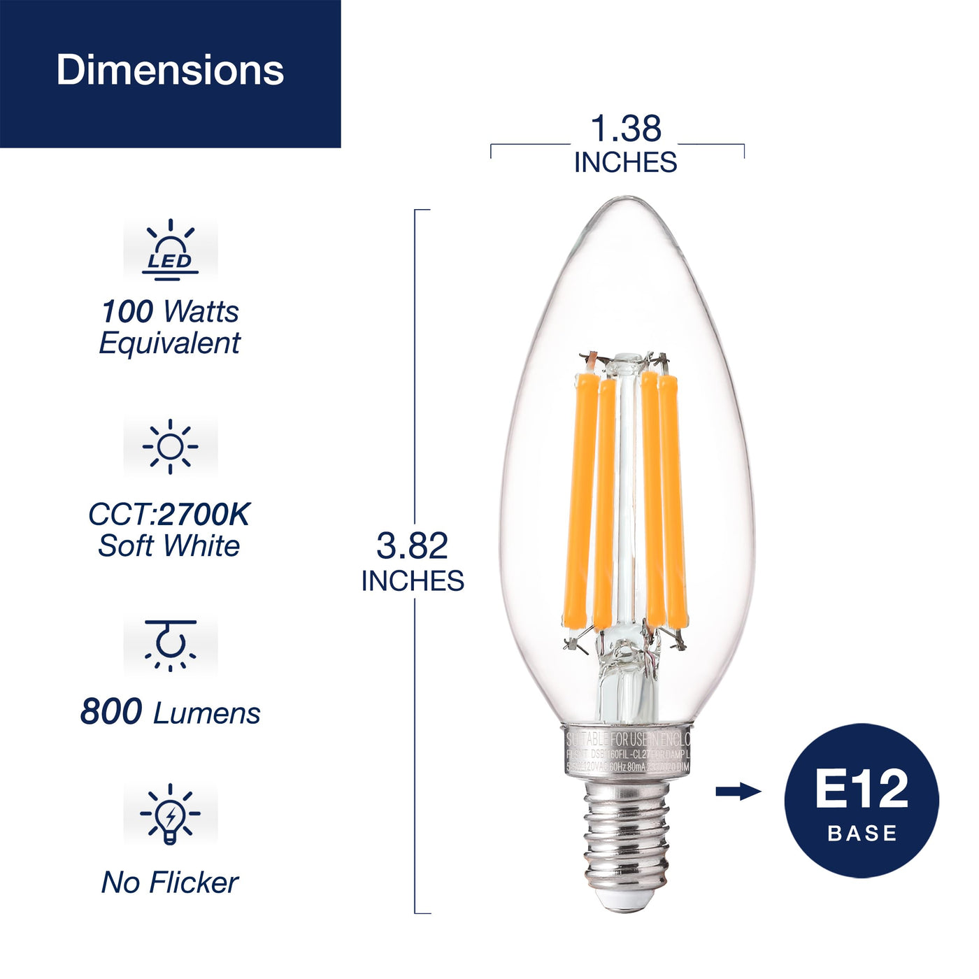 FLSNT 100W Equivalent LED Candelabra Bulbs, 800LM Dimmable LED Chandelier Light Bulbs, 2700K Soft White, E12 Base, 6 Pack