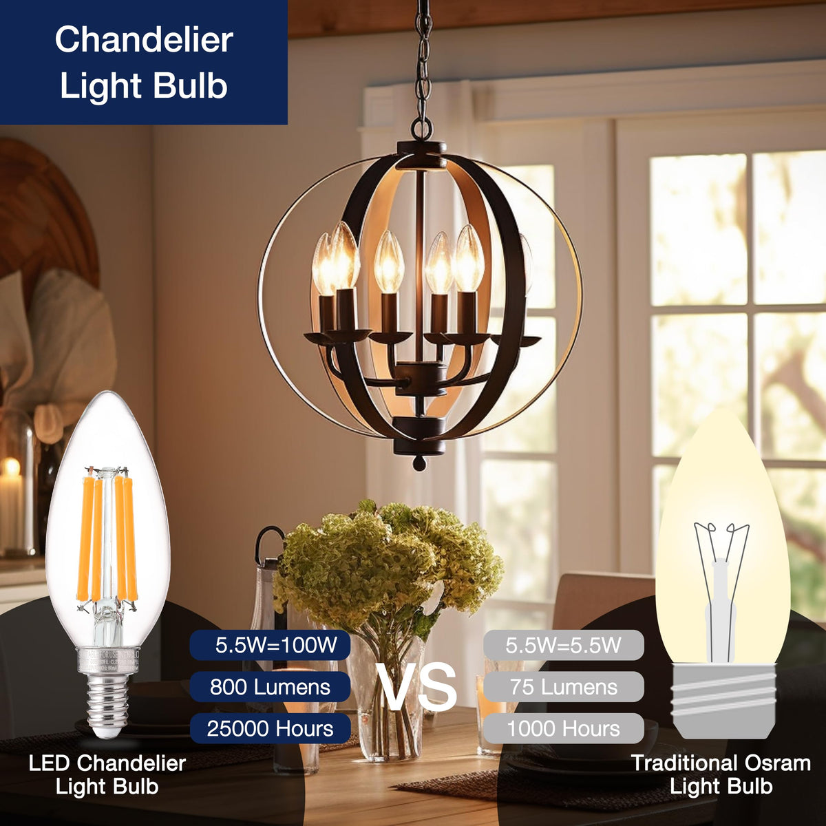 Flsnt 100W Equivalent Led Candelabra Bulbs, 800Lm Dimmable B11 E12 Led Chandelier Light Bulbs, 5.5W, 2700K Soft White, 6 Pack
