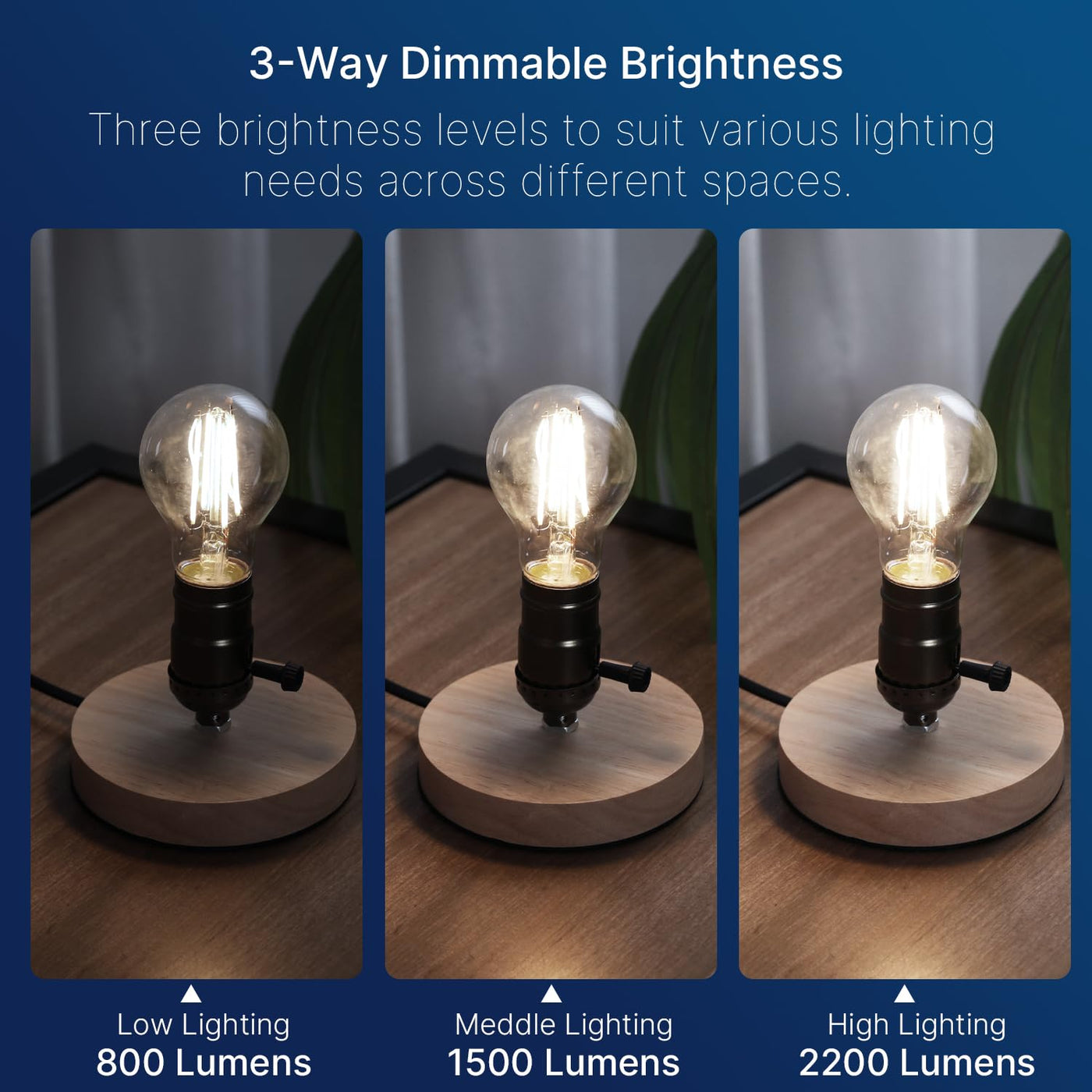 FLSNT 3 Way LED Light Bulb E26 Standard Base, 50W 100W 150W Equivalent, 3-Way Dimmable A23 LED Clear Light Bulbs, 5000K Daylight,800lm-1500lm-2200lm 2 Pack