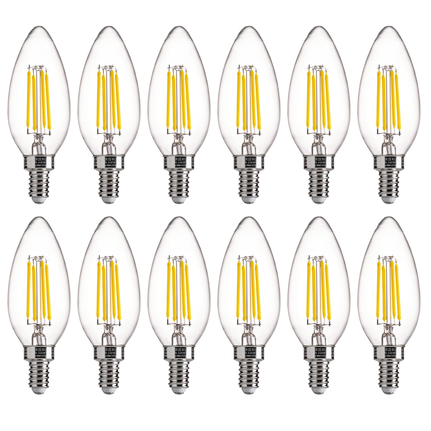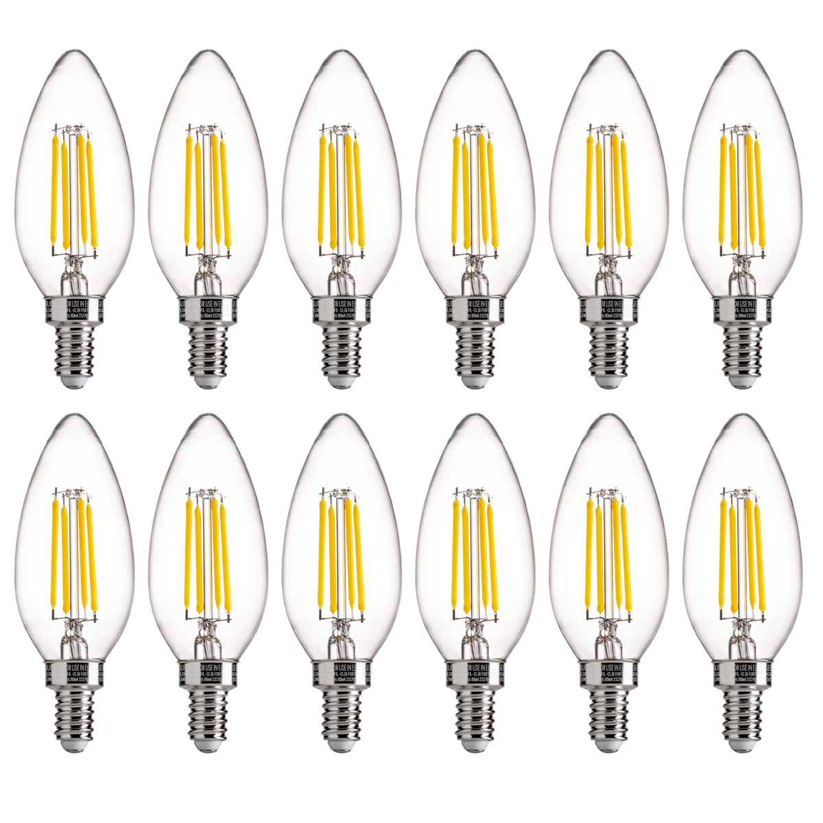 Flsnt 5000K Daylight Dimmable Led Candelabra Bulbs 60W Equivalent, Led E12 Base Chandelier Light Bulbs, 550Lm, 90+ High Cri, 12 Pack