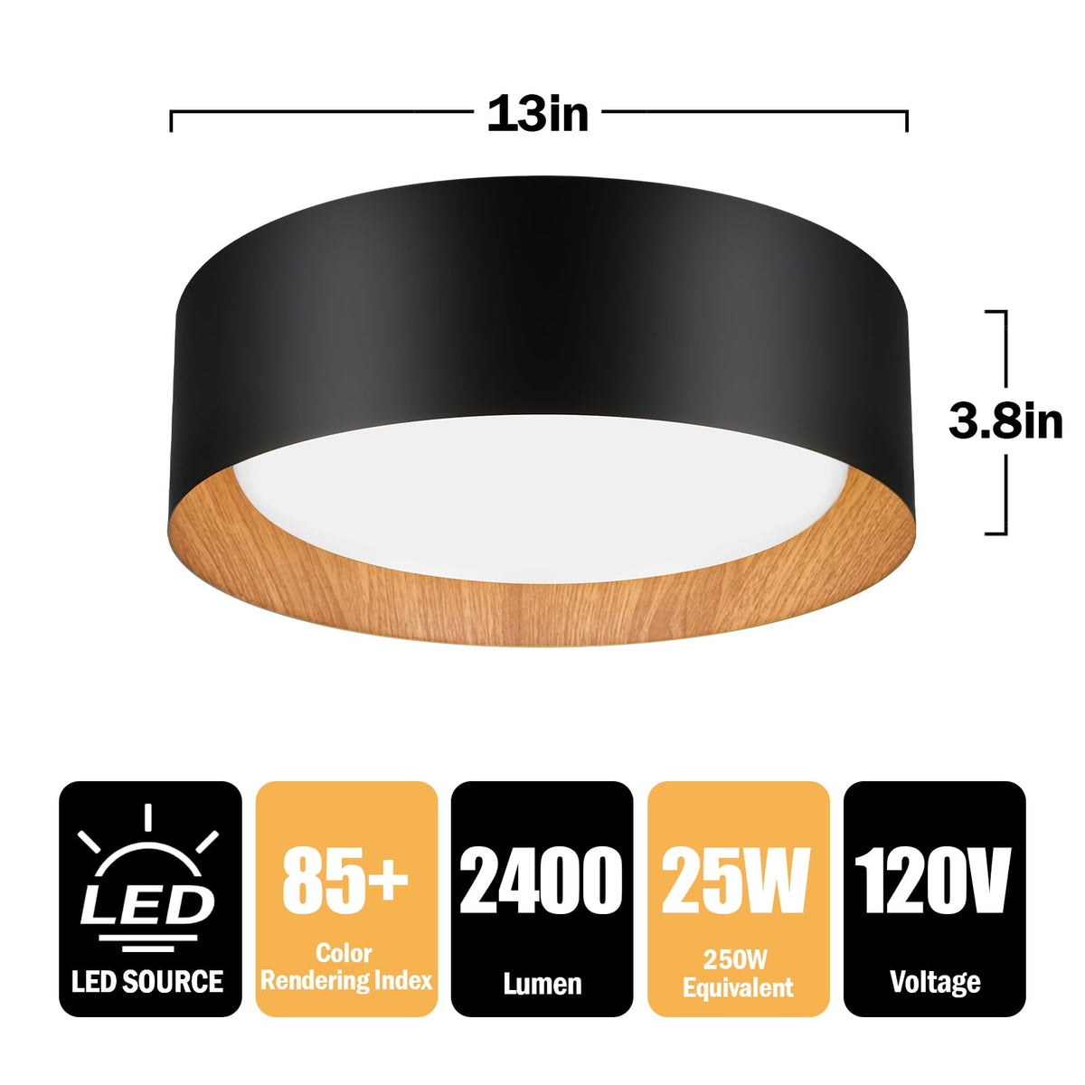 Flush Mount Ceiling Light, 13In 250W Equivalent Led Ceiling Light Fixture, 3Cct Adjustable 3000K 4000K 5000K, Dimmable Black And