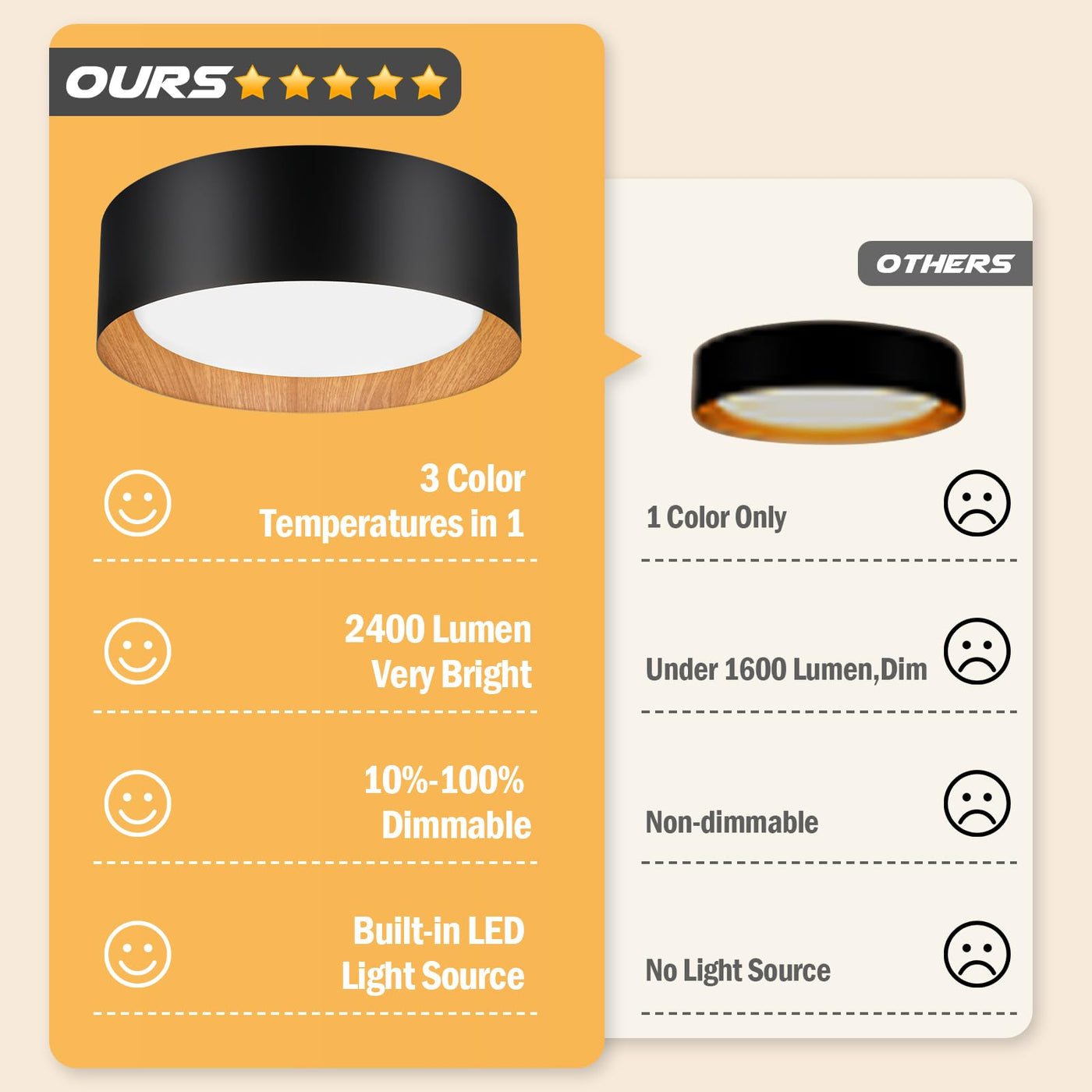 Q: Is this ceiling light dimmable?A: Yes, the flush mount ceiling light is dimmable from 10% to 100% when paired with a compatible dimmer switch (not included). This feature allows you to customize the lighting intensity according to your preference, creating the perfect ambiance for any occasion.