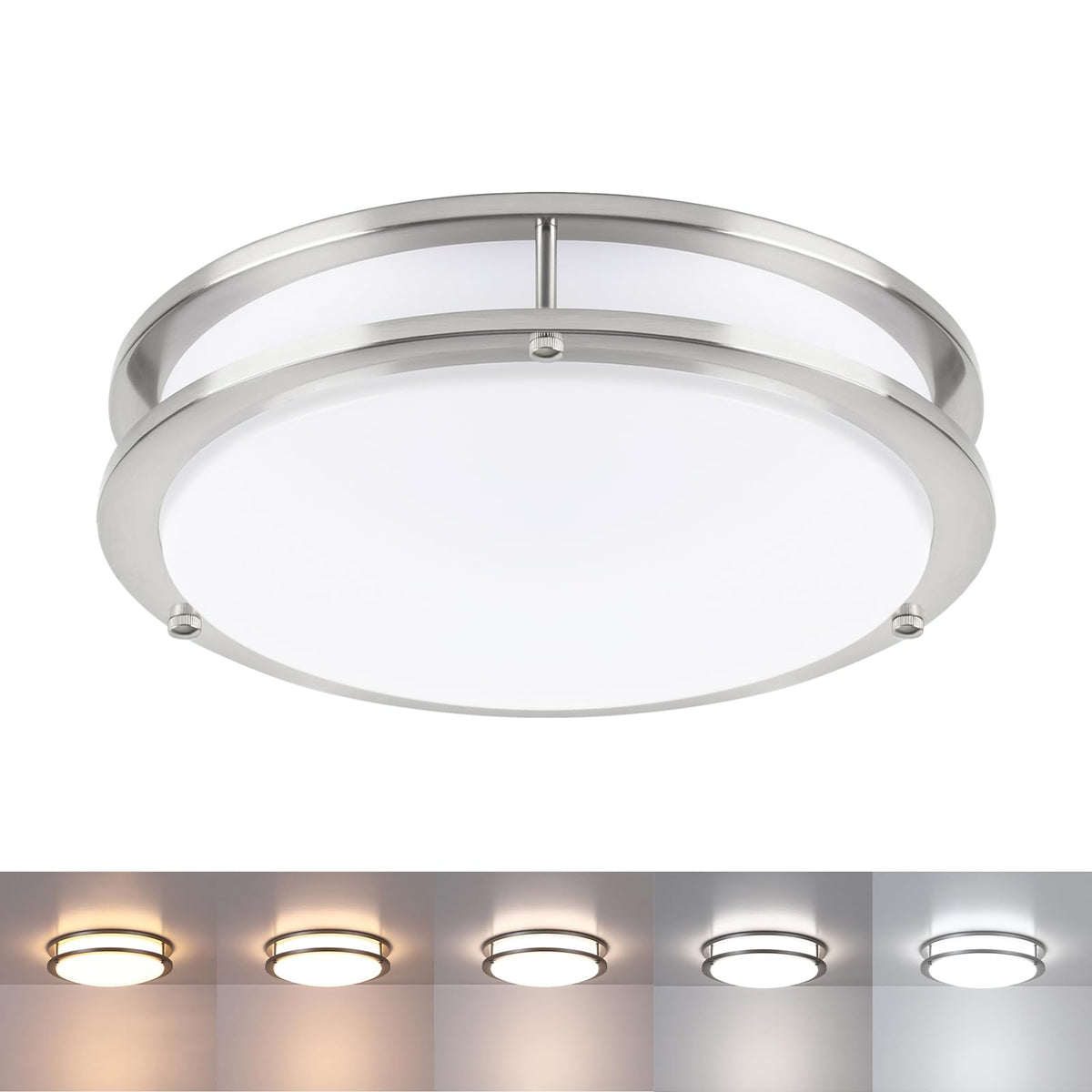 Faymart 13 Flush Mount LED Ceiling Light Fixture, 23W, 5CCT Adjustable, Brushed Nickel, Dimmable Lighting for Bathroom & Bedroom