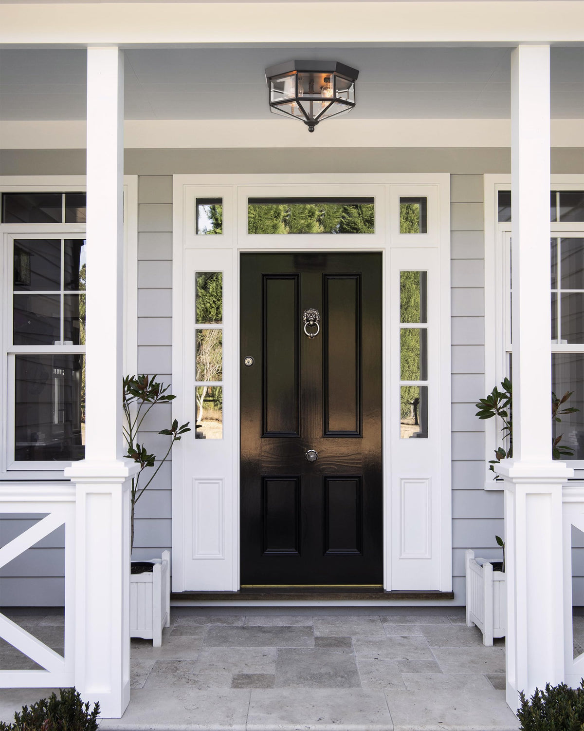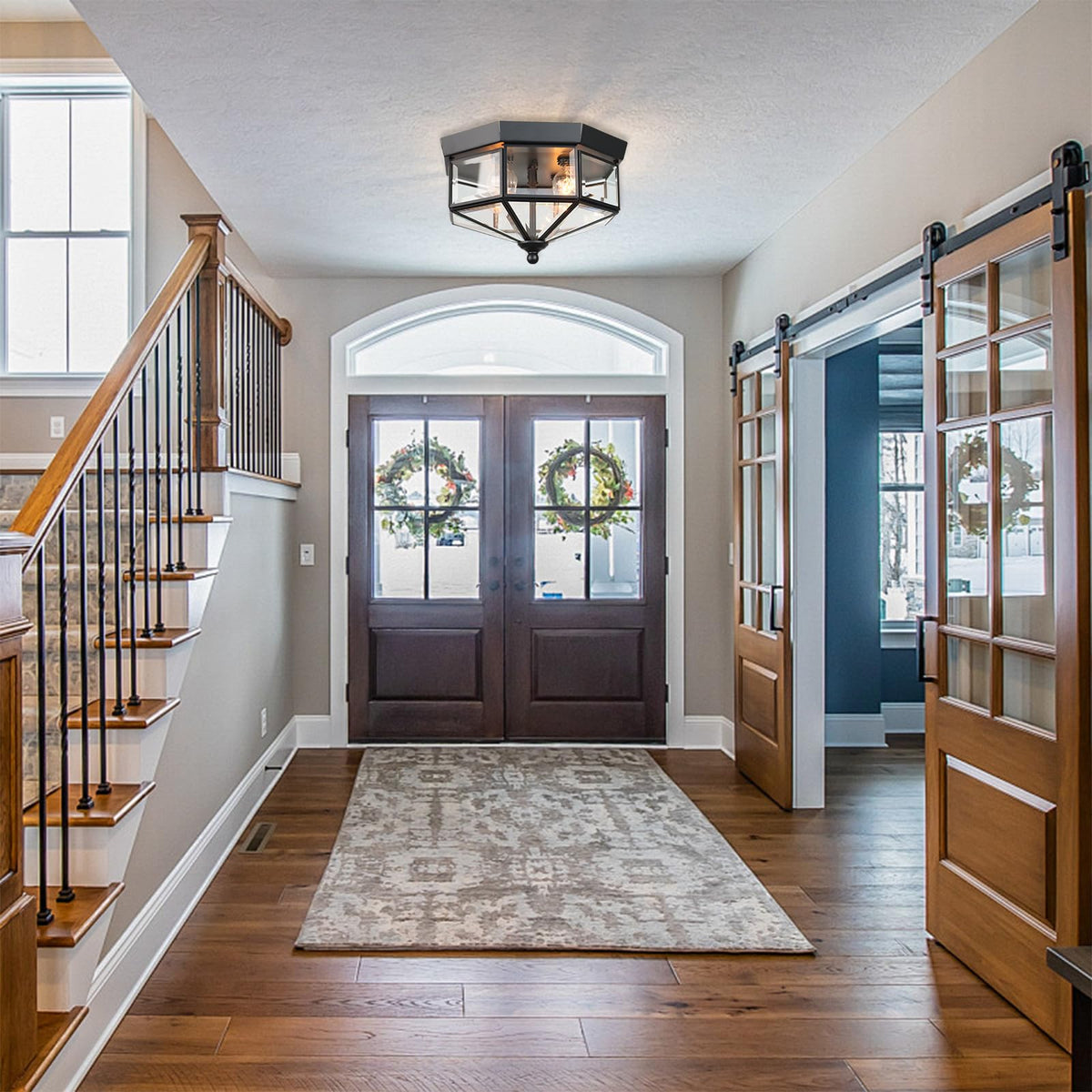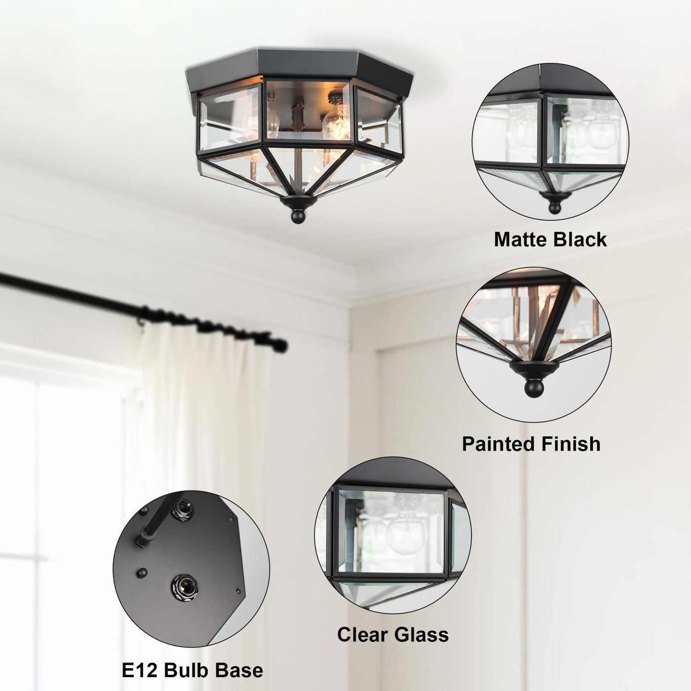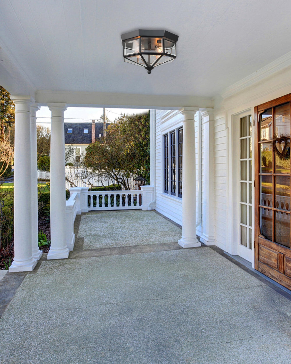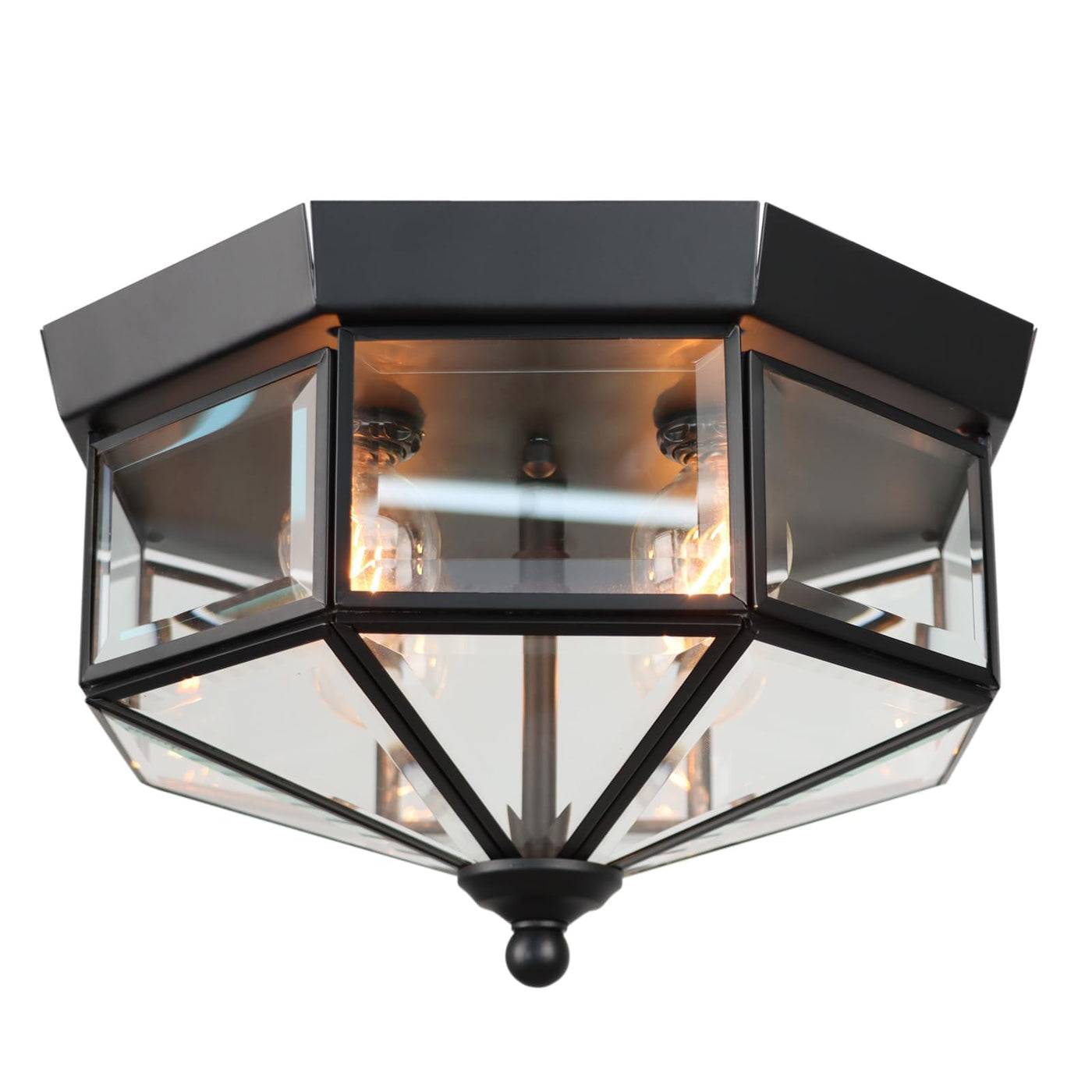 Flush Mount Outdoor Ceiling Light Fixture 4 Light Exterior Porch Ceiling Lights With Clear Glass Black Farmhouse Lighting For Indoor Hallway Kitchen Stairway (E12 Base)