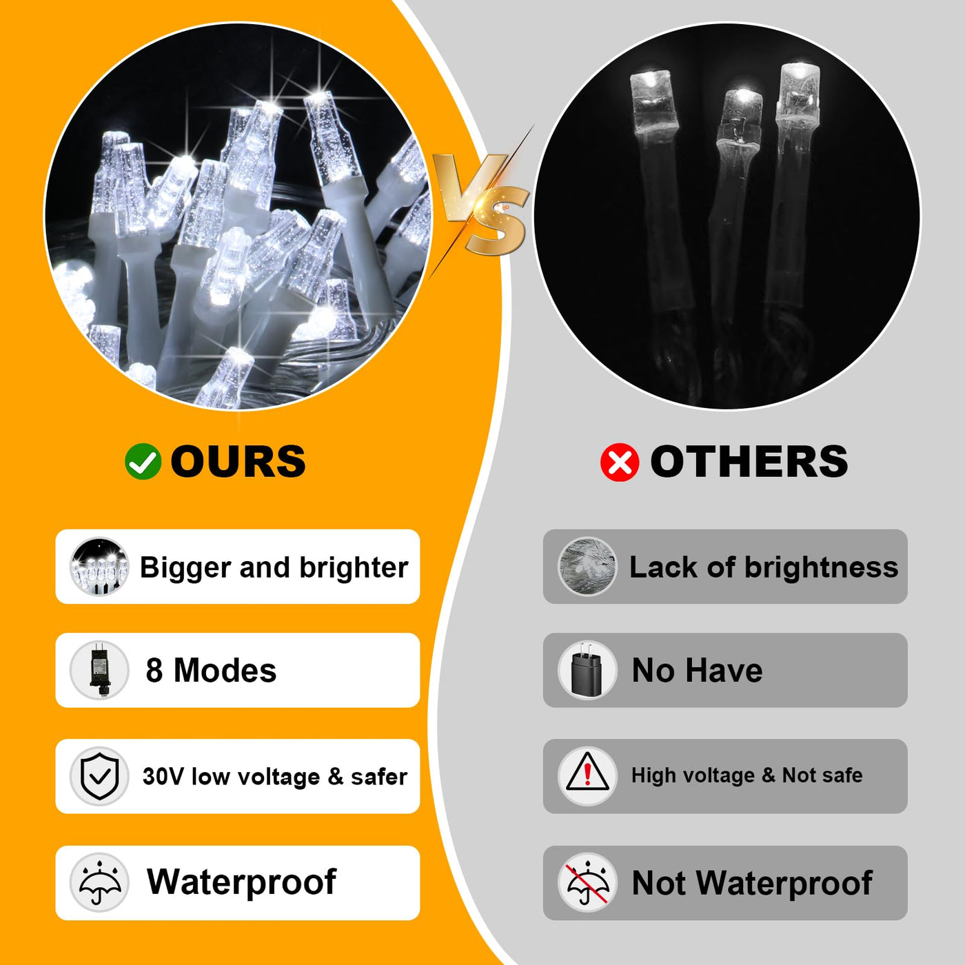 Q: Is the FLVOECN Christmas light safe to use and what is the power source?A: Yes, the FLVOECN Christmas lights come with a UL Listed 29V low voltage power plug, which makes them safe to use. The low voltage ensures that they are energy-efficient and safe for both indoor and outdoor settings.
