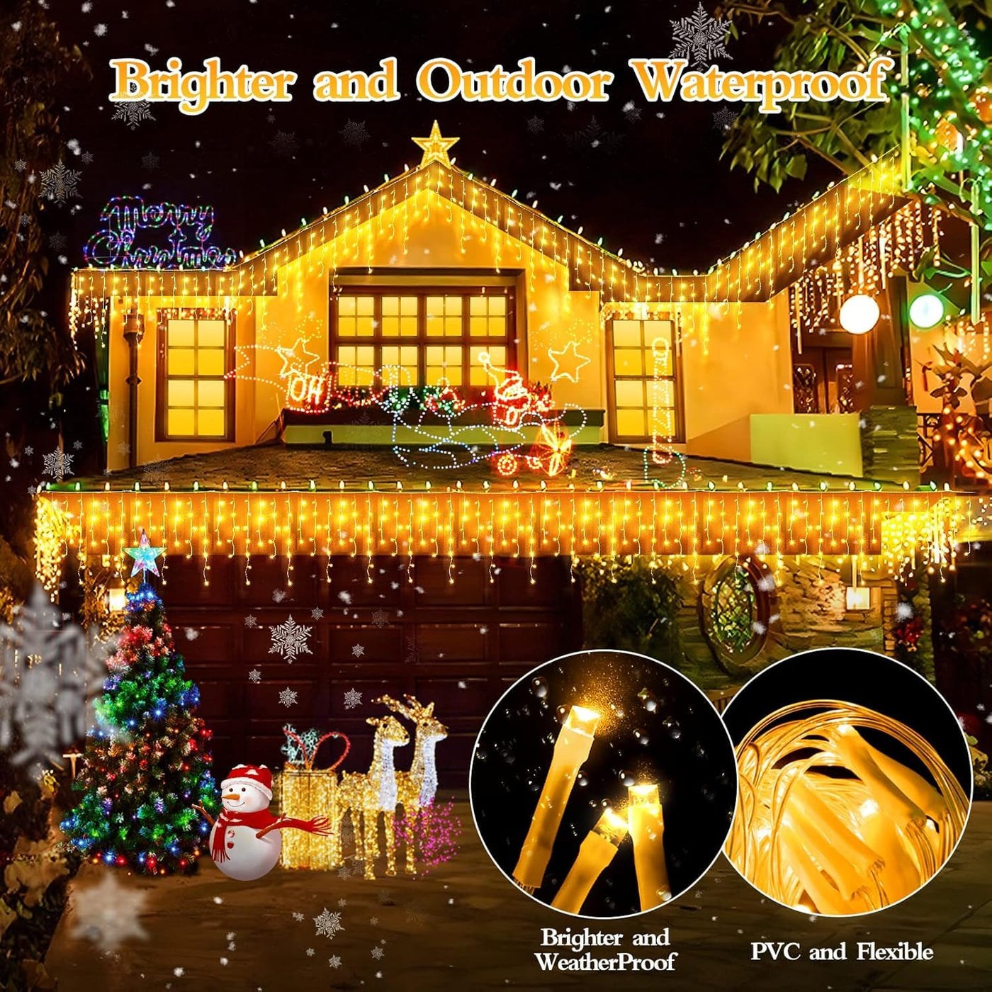 Flvoecn 480 Led 49Ft Christmas Lights Plug In 8 Modes With Timer Dimmable Christmas Decorations Outdoor Waterproof Indoor Curtai